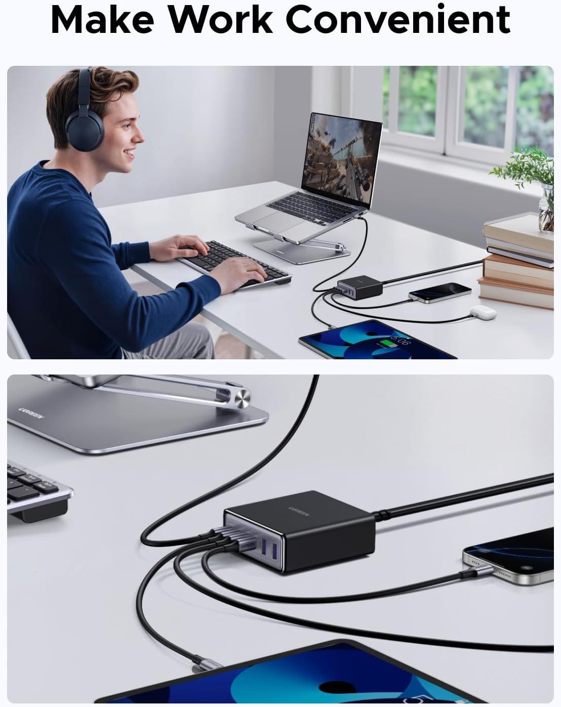 imageUGREEN 65W GaN Charging Station 5Port USBC ampamp USBA Fast Charging Power Hub Compact Desk Station Compatible with iPhone 171615 Galaxy S25S24 Pixel 109 iPad Pro MacBook ProAir