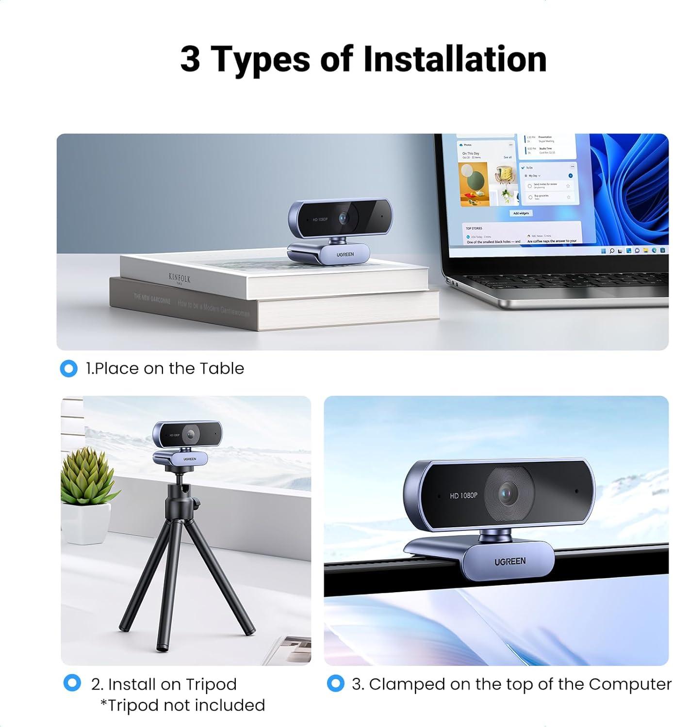 Built-in 2 Noise-Cancelling Microphones: UGREEN webcam for PC comes with built-in dual microphones that can pick up sound from up to 3m. The computer camera features 2D digital noise reduction, which filters out environmental noise to ensure clear audio during video calls or recordings, making every call more natural and clear