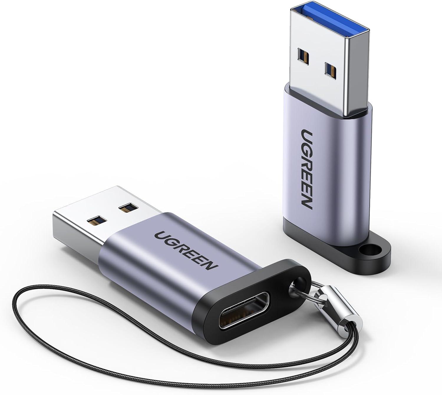 UGREEN USB to USB C Adapter 10Gbps,2 Pack USB C to A Adapter Compatible with iPhone 16 15 Pro/Samsung/MacBook Pro/Air/iPad Pro,Thunderbolt 4/3,Space Gray