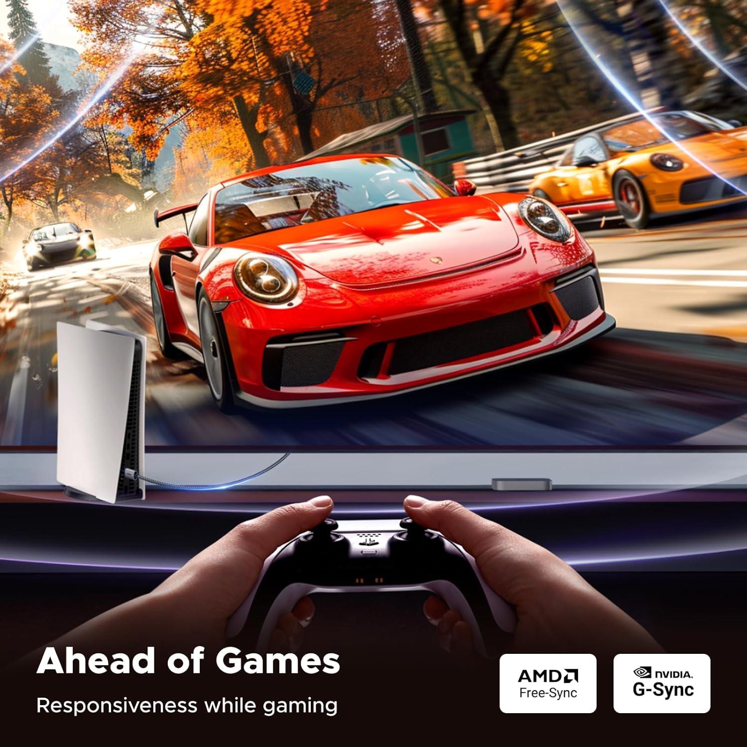 80Gbps for Seamless Gaming: DP 2.1 can fully achieve a max bandwidth up to 80Gbps which is highly recommended for game setups with no lag or interference. It supports FreeSync and G-Sync, which are essential for gaming. Variable refresh rate (VRR) and auto low latency mode (ALLM) bring you smoother game experience especially in FPS, 3A and MOBA games. It also supports HDR, HDCP2.3, eARC, DTS 7.1, and Dolby, through which you can get an immersive visual feast