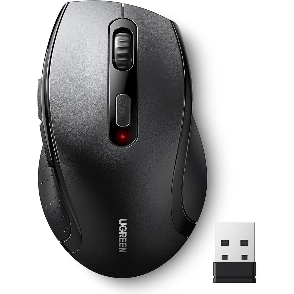 imageUGREEN 24GHz Wireless Mouse Ergonomic 1600 DPI USB Receiver Compatible with Windows Mac Linux Chromebook Laptop PC