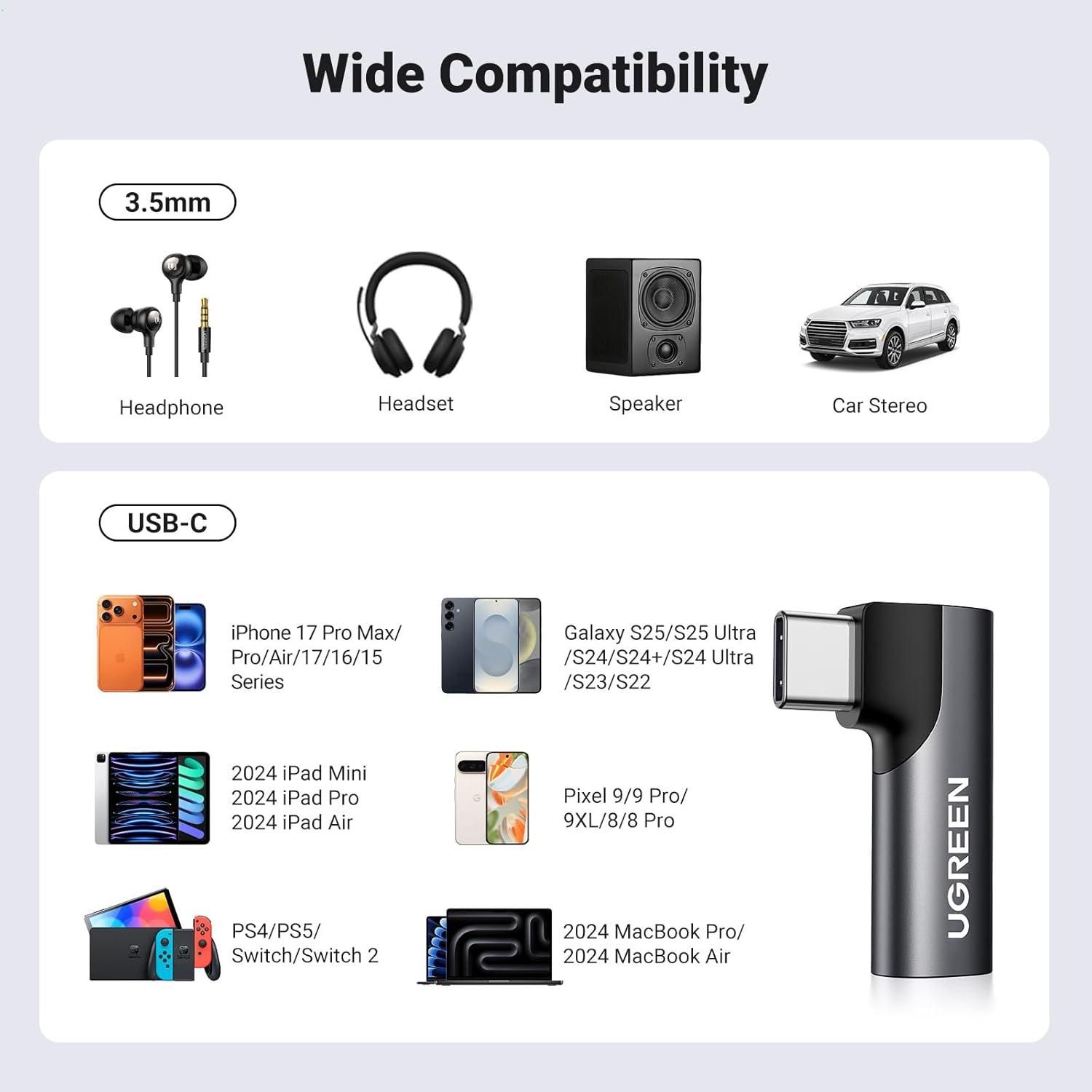 Get Ready for Travel: UGREEN USB C to Audio Jack Adapter features ultra-mini and lightweight size. Add little burden to your travel, but greatly increase your music or gameplay enjoy. Note: Max thickness of phone case allowed is 3mm/0.12inch