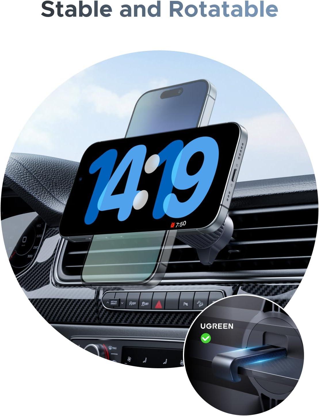 Secure & Reliable: Reinforced vent clip and smart protection system keep your phone stable and safe while charging