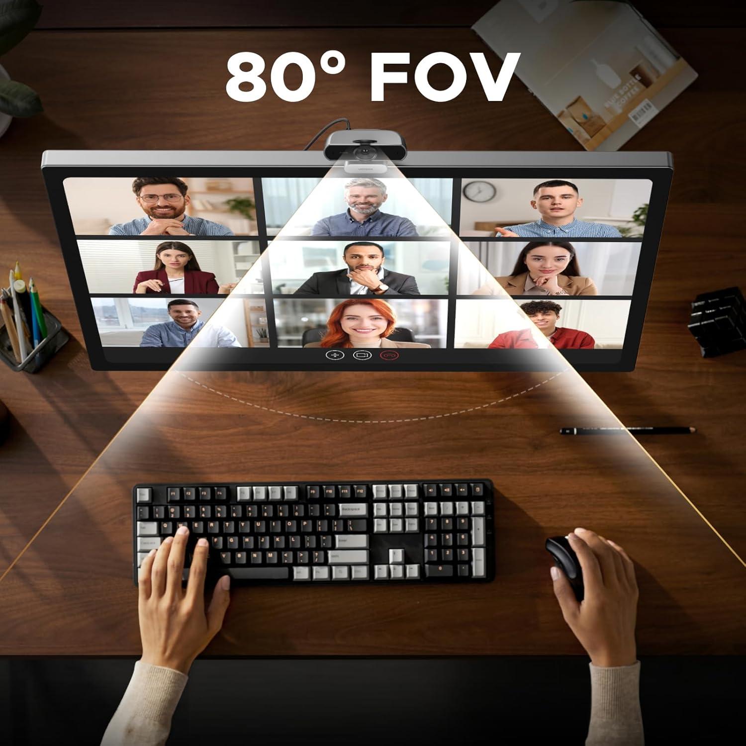 Auto-Adjust Light&80° FOV: The web camera automatically adjusts color temperature and corrects low light for a flawless appearance. The 80° field of view (FOV) allows you to display more content in your video while maintaining a suitable close-up perspective