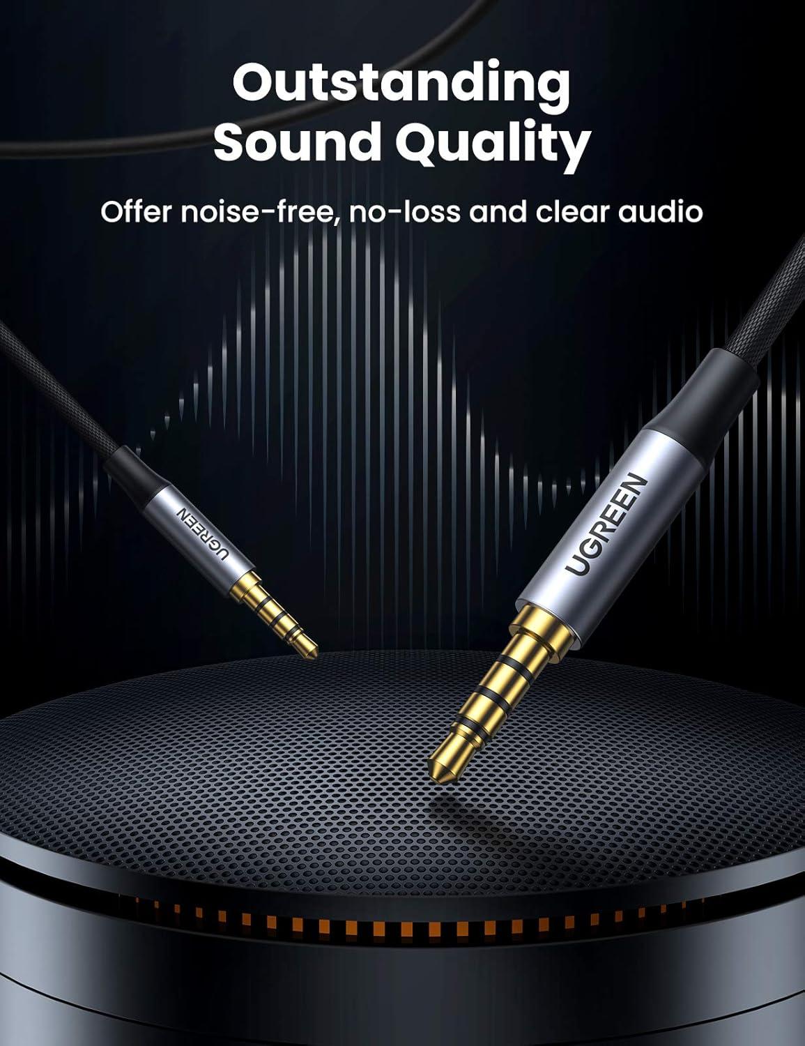 Practical 3.5mm Audio Cable with MIC: UGREEN 4-Pole 3.5 mm Audio Cable supports both audio and microphone function. Perfect audio cable for headsets with mic function. This aux cable streams Hi-Fi stereo audio directly from the output devices to input devices, without audio converters, like connecting laptop to speaker, phone to headphones, TV to soundbar, phone to car stereo system
