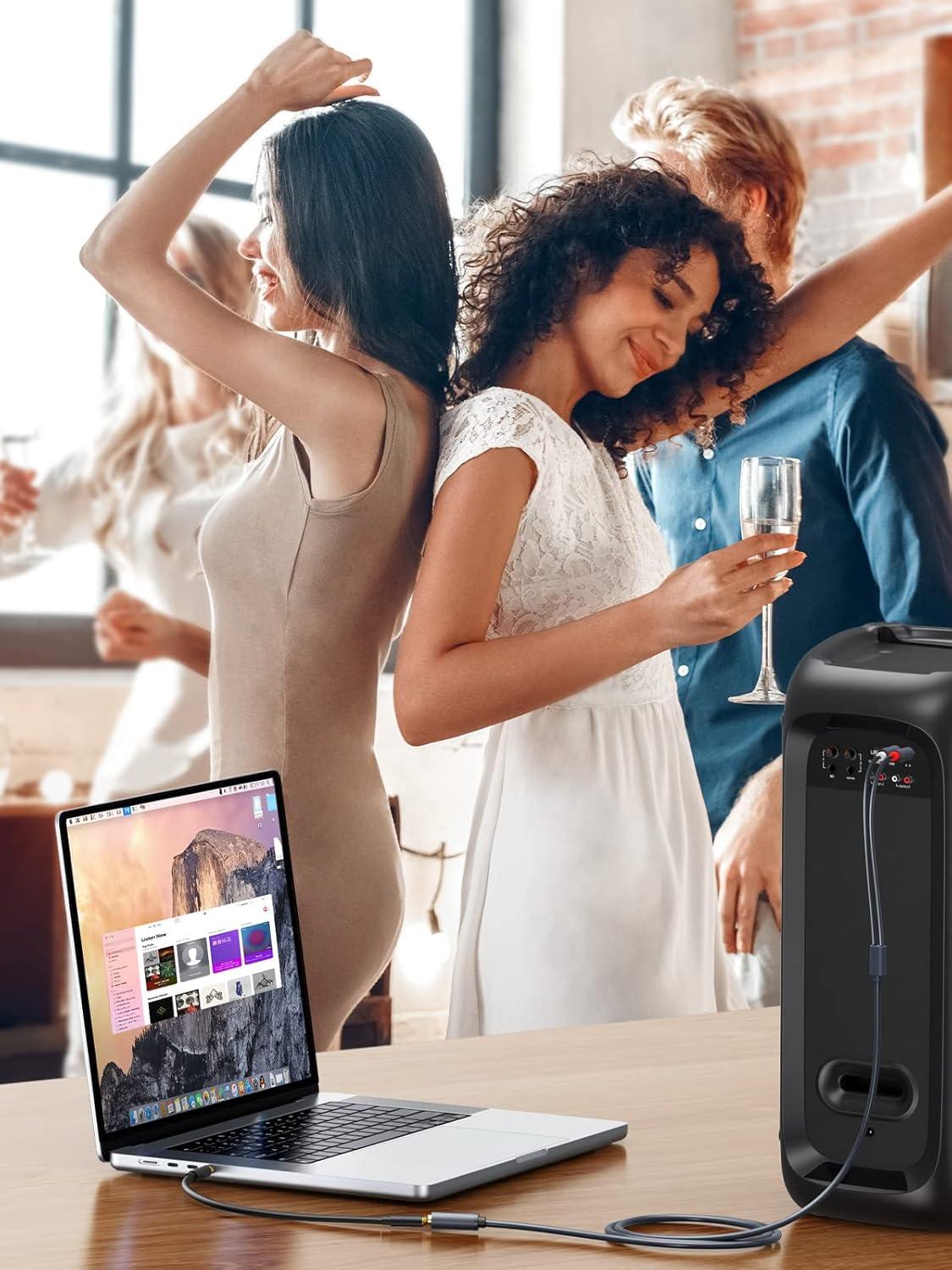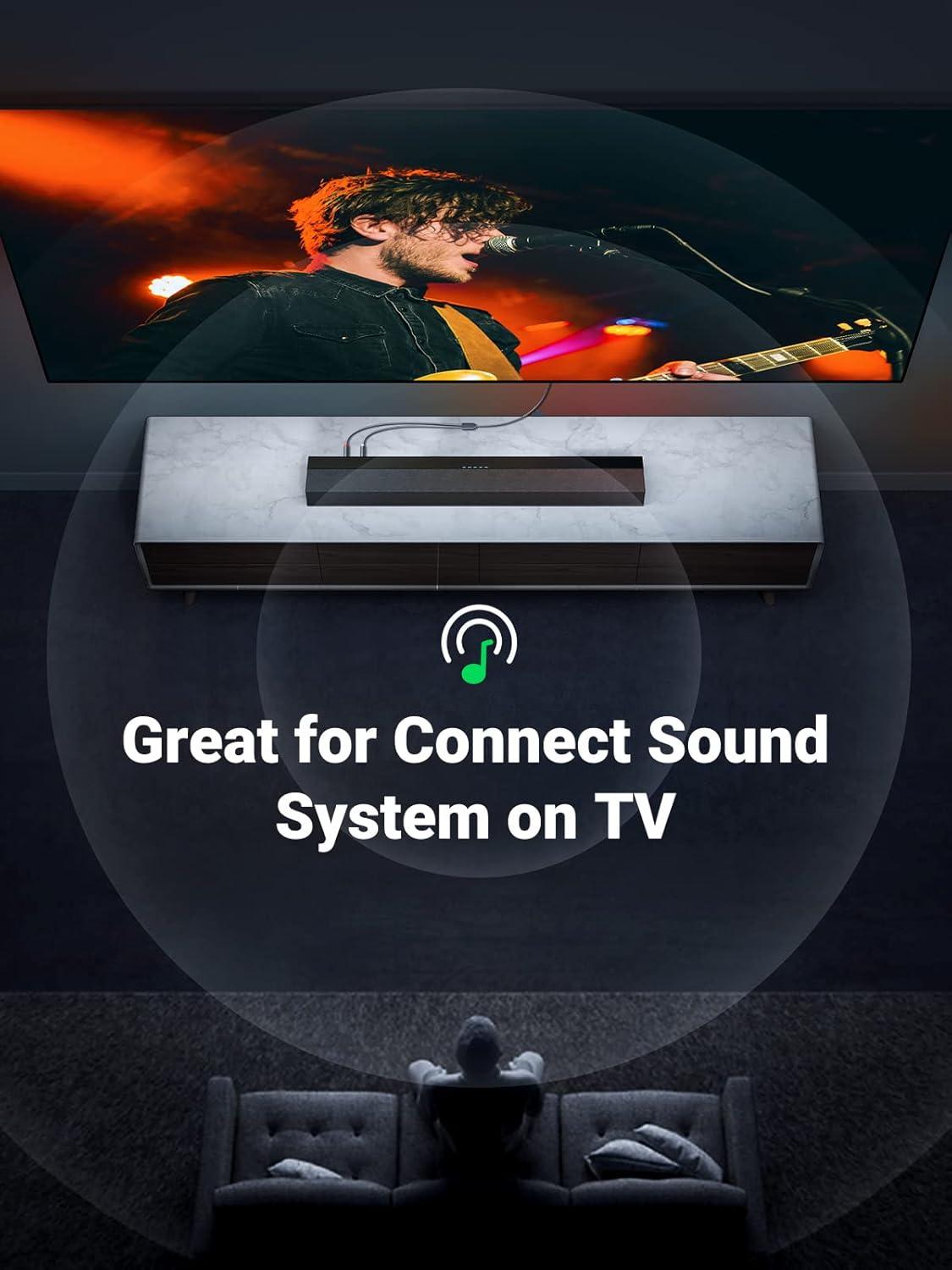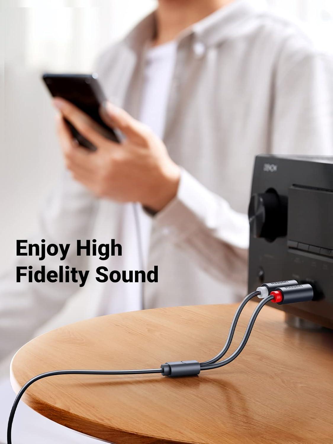 3.5mm Female to 2 RCA Audio Cable: UGREEN 3.5mm to dual RCA male cable streams Hi-Fi stereo audio from devices of aux port to devices of Red and White(L/R) port with an extra 3.5mm male to male cord, like connecting laptop to amplifier, TV to soundbar, DVD player to speaker, DAC to turntable. The 1/8 Aux female to red and white wire would offer a remarkable stereo sound experience to you