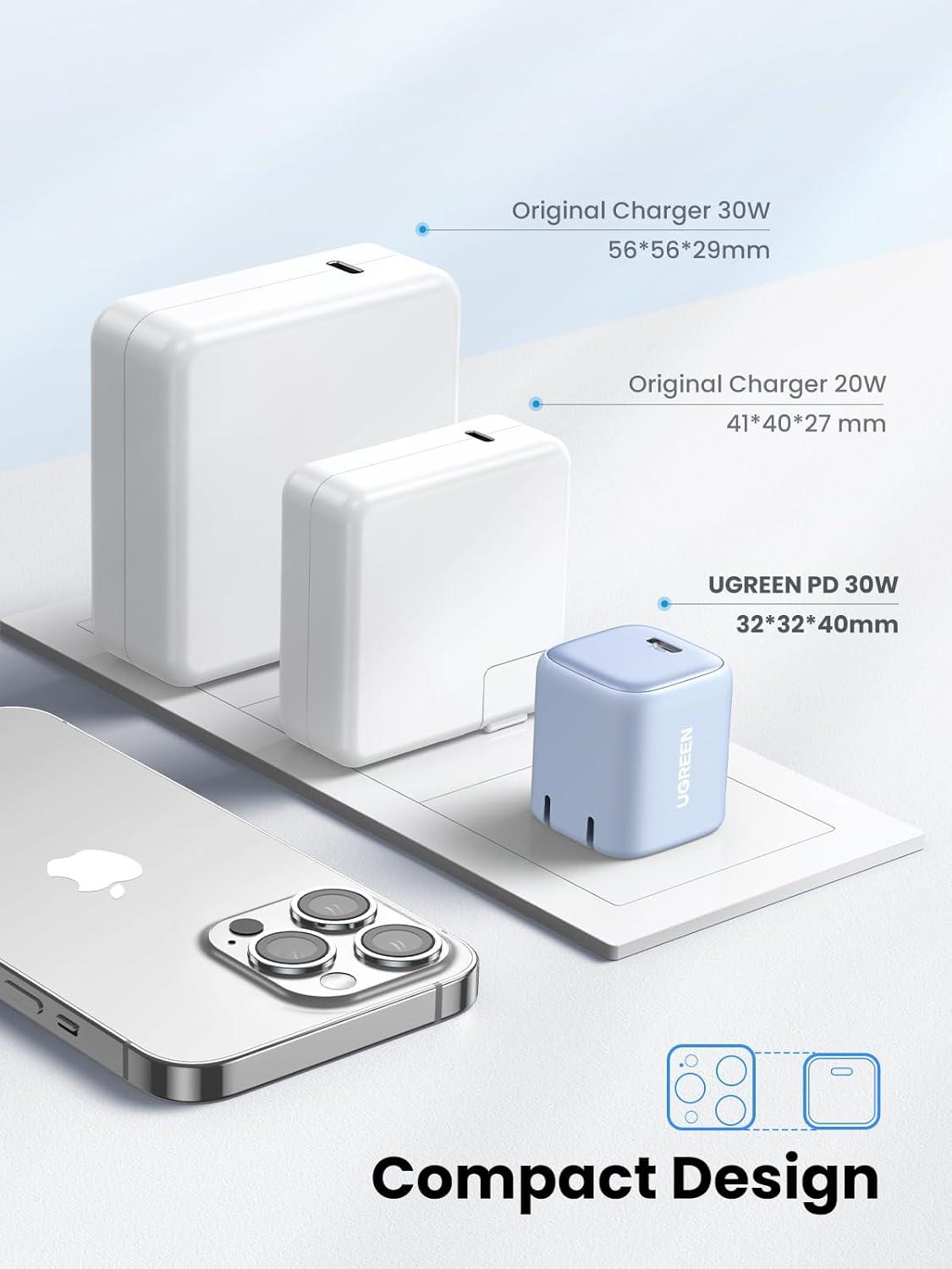 imageUGREEN 30W USB C Charger for iPhone 17 Nexode Foldable GaN PPS Compact Fast Wall Charger Block USBC Power Adapter for iPhone 17161514 Galaxy S25S24S23S22 BlackBlue