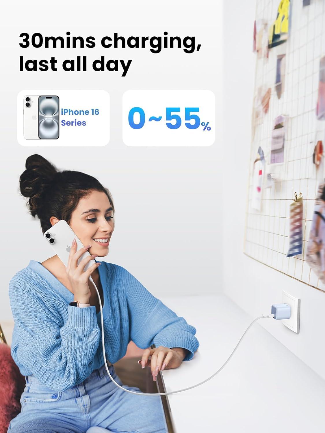 Powerful 30W Charging: Charge your new iPhone 17 from 0 to 55% in just 30 mins, when charging a Samsung mobile phone, super fast charging display may only pop up when charging starts