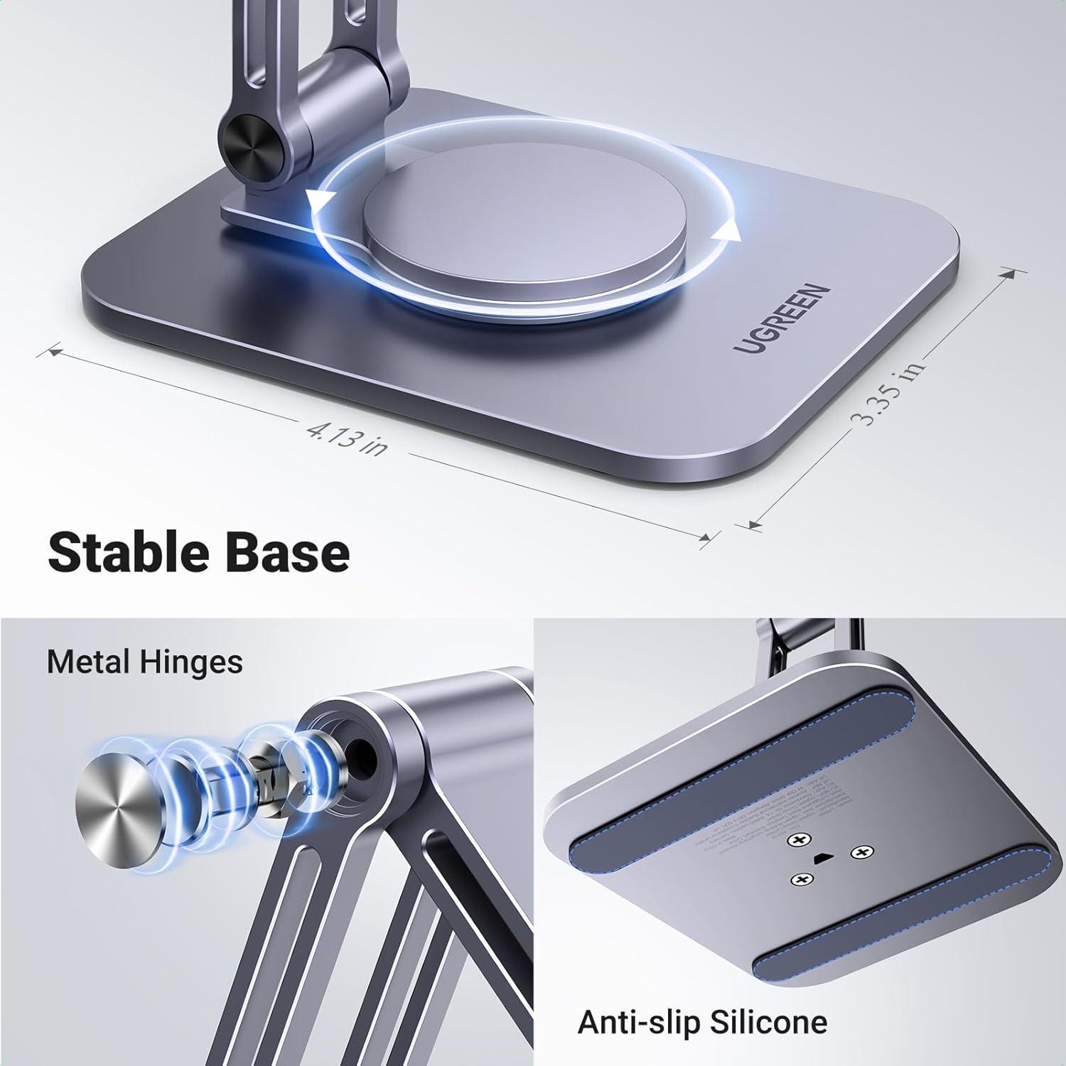 Upgraded Magnetic Phone Stand: UGREEN magsafe phone stand has built-in strong magnets, the surface material of the magnetic panel is upgraded, and soft silicone can protect your device from scratches on the metal stand panel