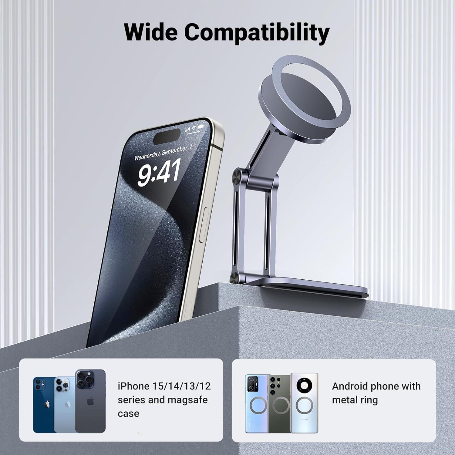 Foldable and Portable: A magnetic phone stand foldable allows you to carry it on the go, fold and put it into your backpack, takes up no space at all and can be folded repeatedly without loose