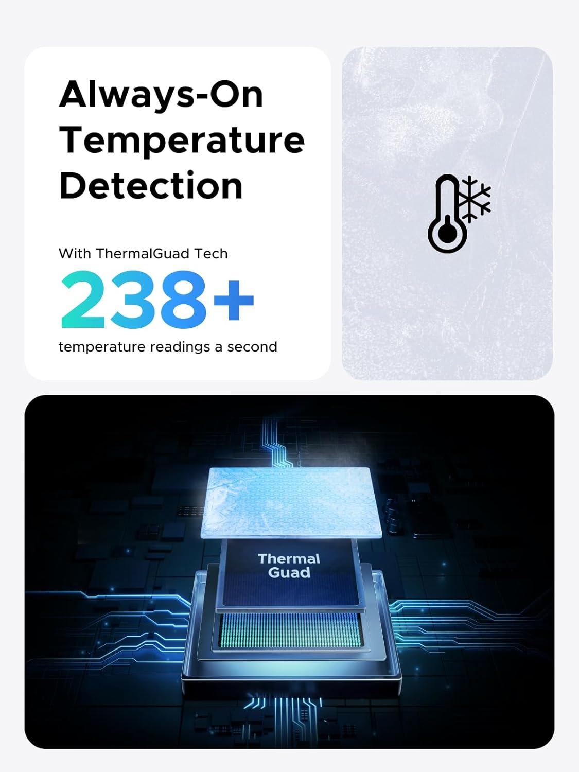 【Safe inside and out, plus more durable】Inside, GaN chip + graphene temperature control: handles high-power charging, stabilizes temps, and minimizes plug-in sparking. Outside, PC flame-retardant build: safe, durable, and reliable for daily long-term use.
