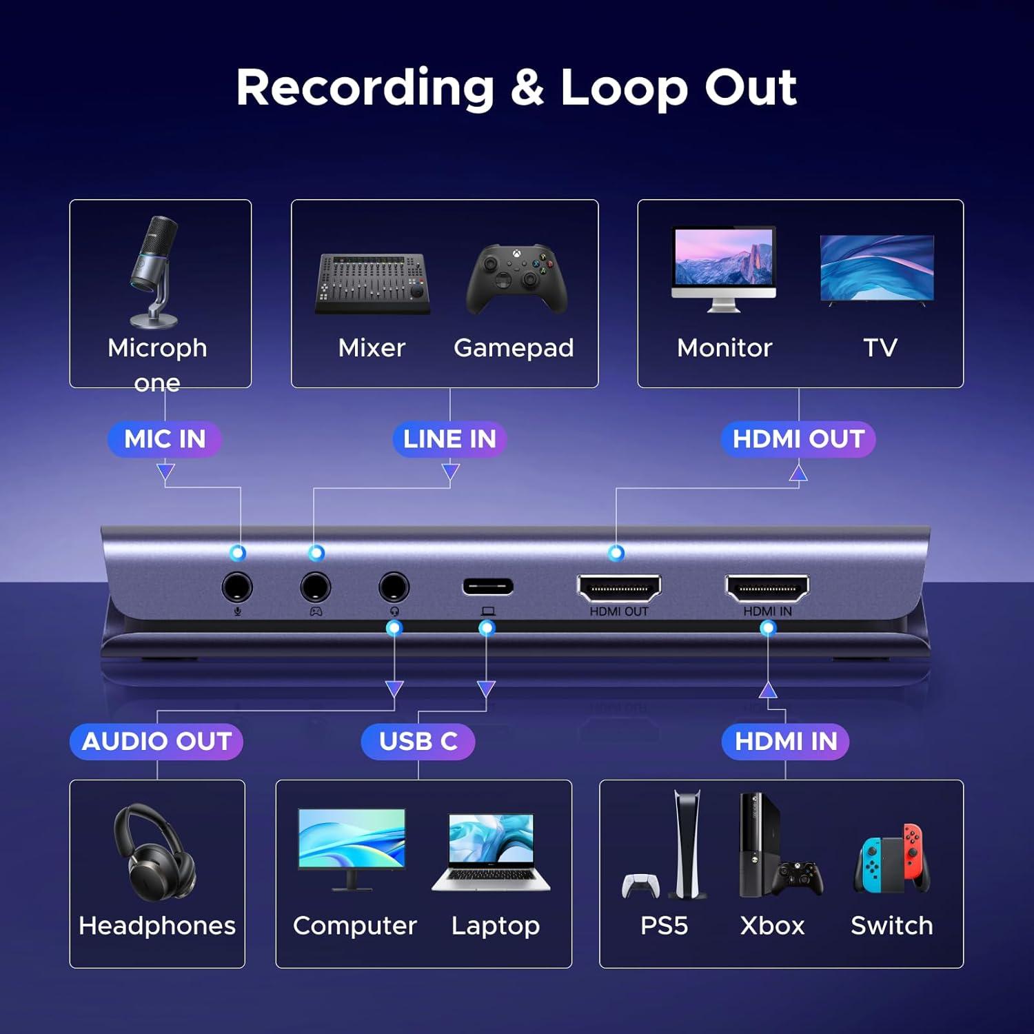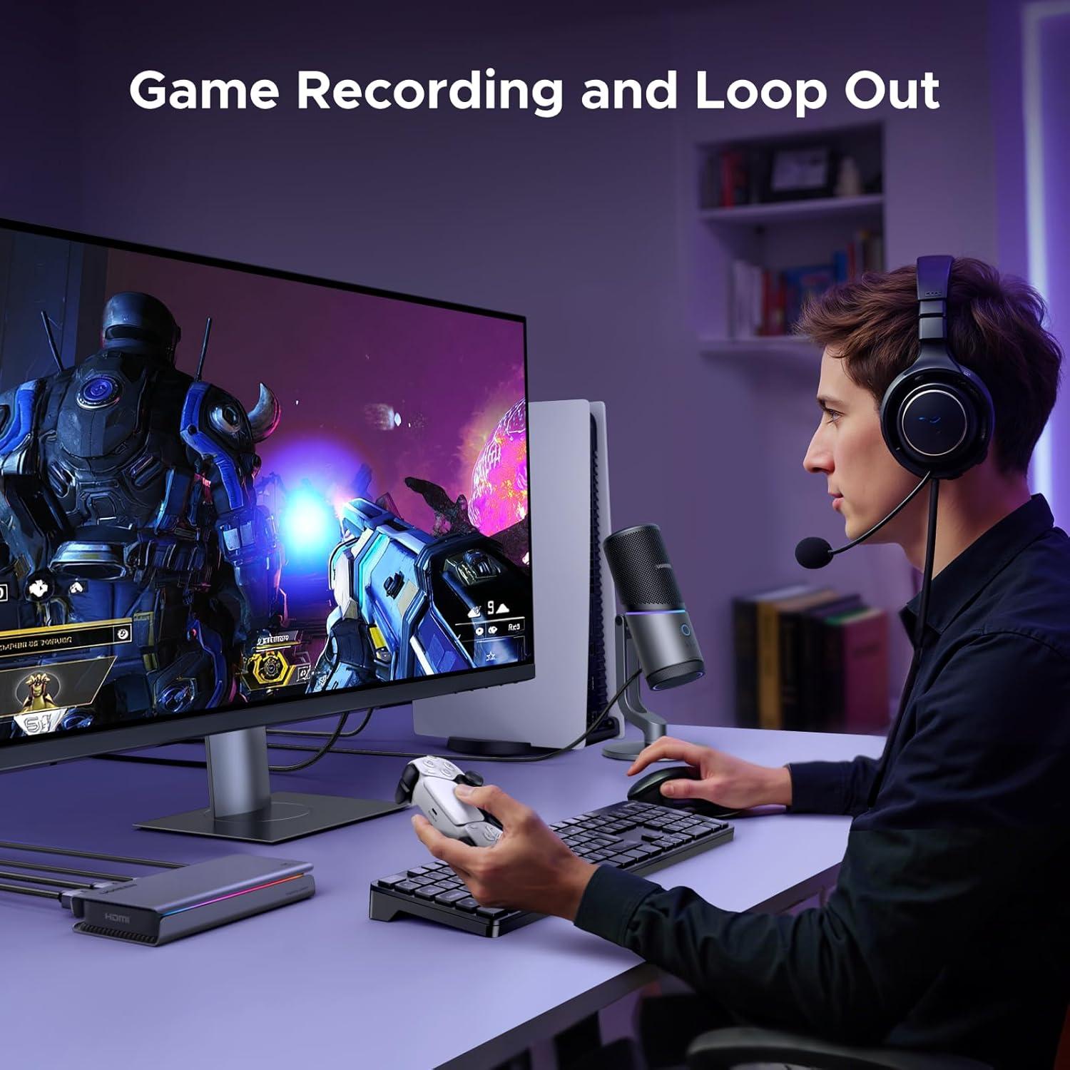 10 Gbps USB 3.2 Interface: With high-speed USB 3.2 data transfer, achieve ultra-low latency streaming from Switch/Switch 2/PS4/PS5(Turn off HDCP) to YouTube/Facebook/Twitter via PC/iPad/Laptop. Backward compatible with USB 3.0/2.0 ports. Features RGB lighting to personalize your gaming
