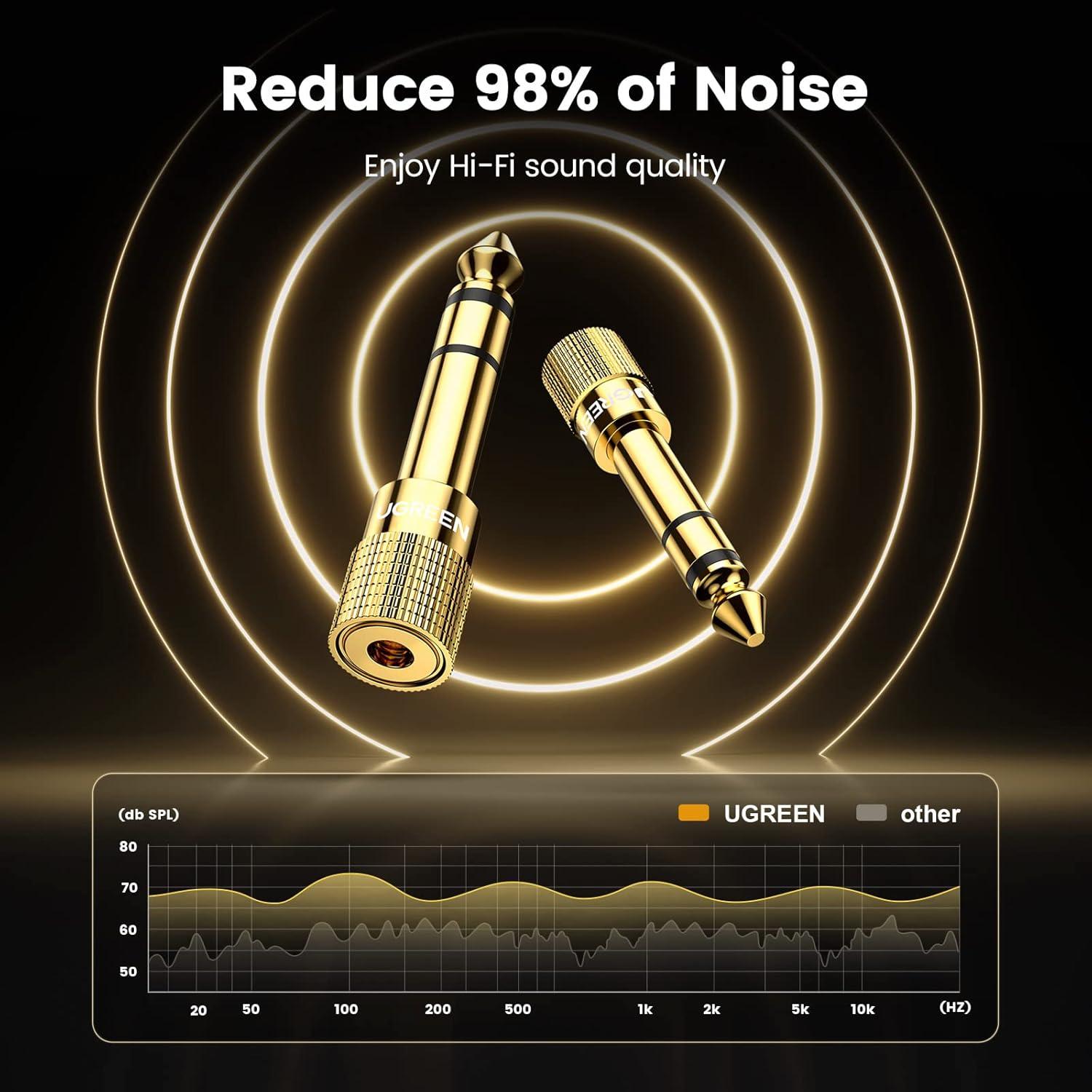 UGREEN 1/4 to 3.5mm adapter is a convenient way to connect smartphones, tablets, iPods, or headphones with 3.5mm 1/8 inch plugs to audio devices with a 6.35mm 1/4 inch stereo jack, let your favorite headphones or other devices fit for most pro audio such as an amp, keyboard, piano