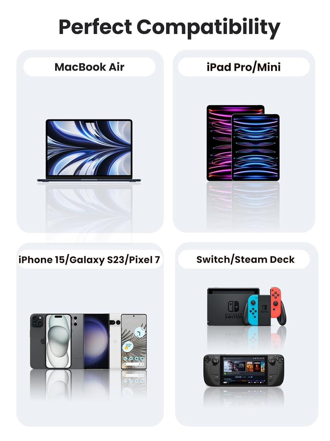 Wide Compatibility: The 60W USB C cable is compatible with iPhone 15/15 Plus/15 Pro, Samsung Galaxy S24/S23/S22, Google Pixel 7, iPad Pro 2021/Mini 6/Air 5, MacBook Air, Surface Go and et