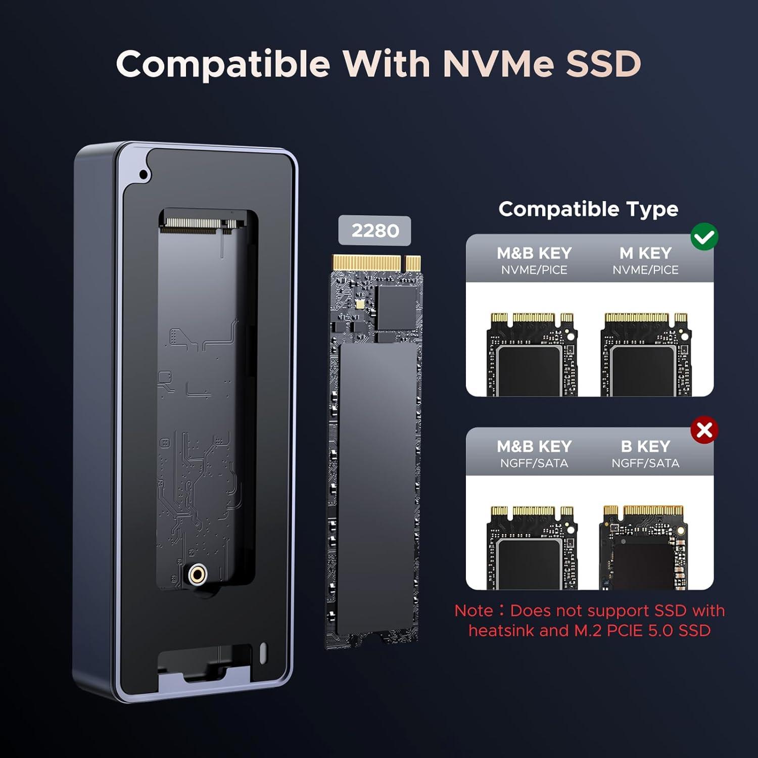 8TB Large Capacity Expansion Nvme Enclosure: Providing the read and write function of 8TB NVME enclosure, you no longer have to worry about memory issues.Note:The product only compatible with Windows, Linux, macOS and supports 2280 size M.2 NVME M-KEY/(M&B)Key,not support M.2 (B-KEY) 、 (M&B)-KEY SATA NGFF SSD and PCIE 5.0 SSD