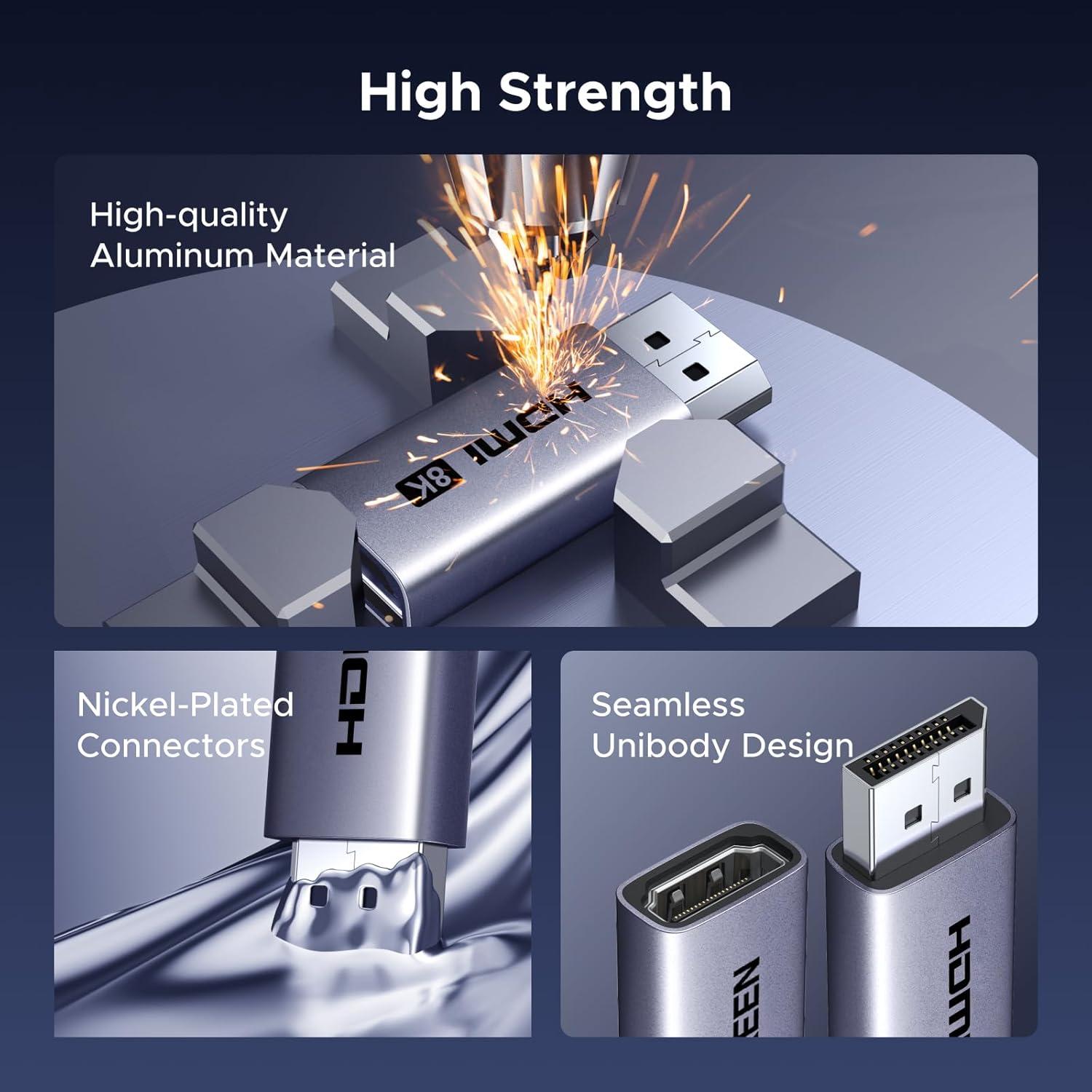 imageUGREEN 8K60Hz Display Port to HDMI Unidirectional Adapter with 4K240Hz 2K240Hz DP 14 PC to HDMI 21 Display Male to Female Cable Aluminum Converter Compatible with AMD NVIDIA UltraSharp2