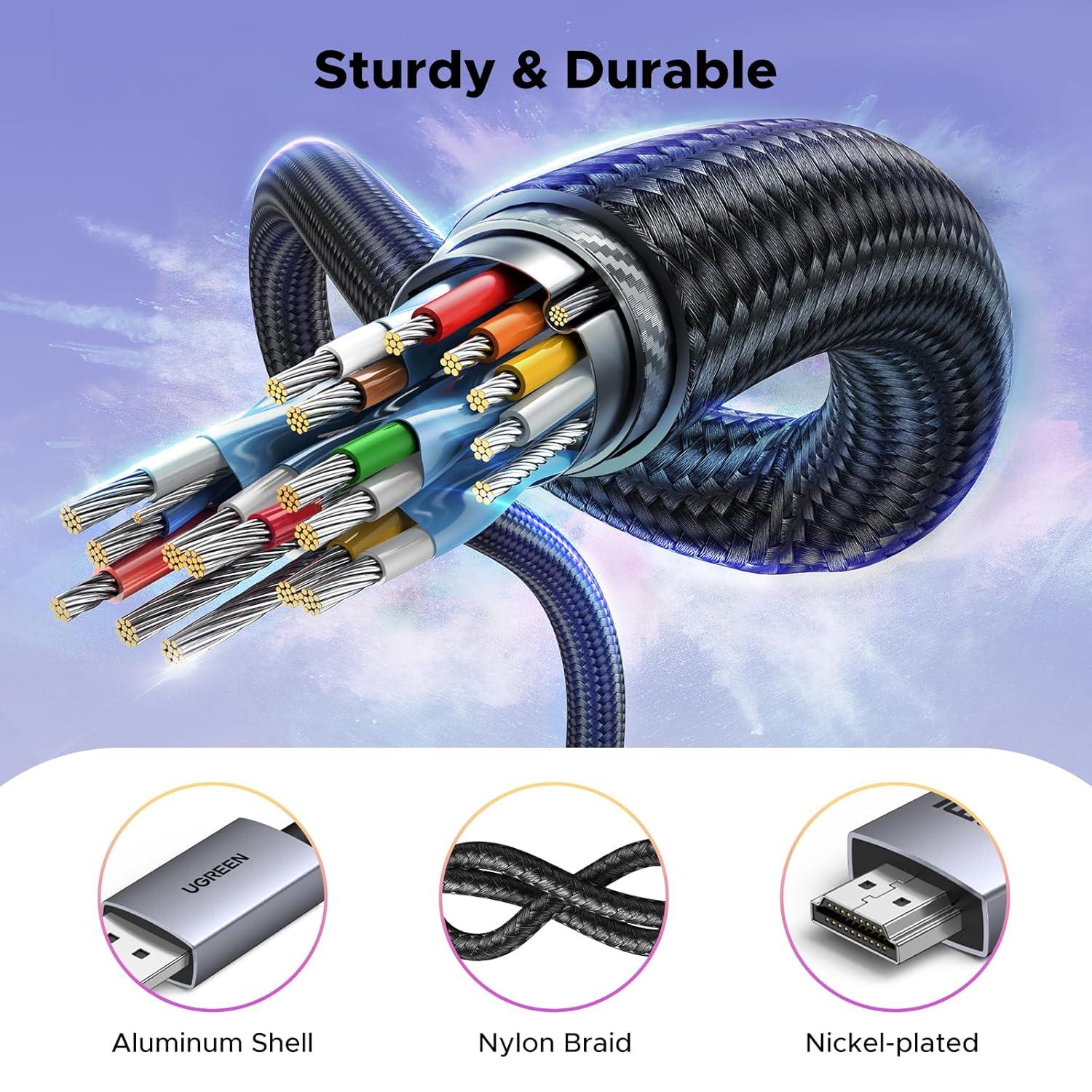 Reliable Design: The cable features a no-buckle design to prevent damage. Constructed with 32AWG tinned copper and double shielding to resist EMI. With alu case, it improves heat dissipation. The nylon braided jacket is 10X stronger than PVC, ensuring high connectivity