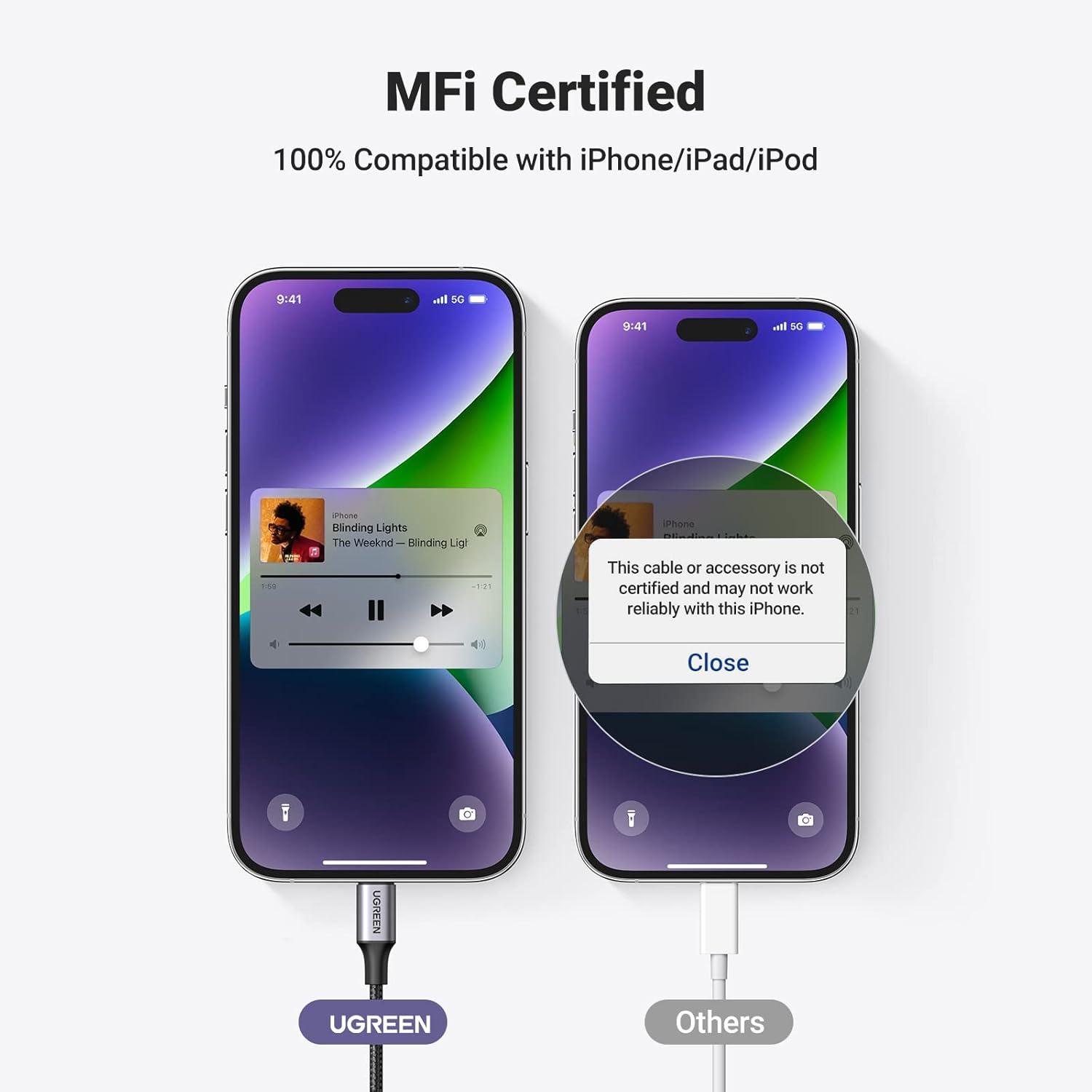 Apple MFi Certified: UGREEN Aux cord for iPhone Lightning to 3.5mm audio cables are certified by Apple to meet rigid iPhone requirements and ensure a completely and securely connect with your Apple devices