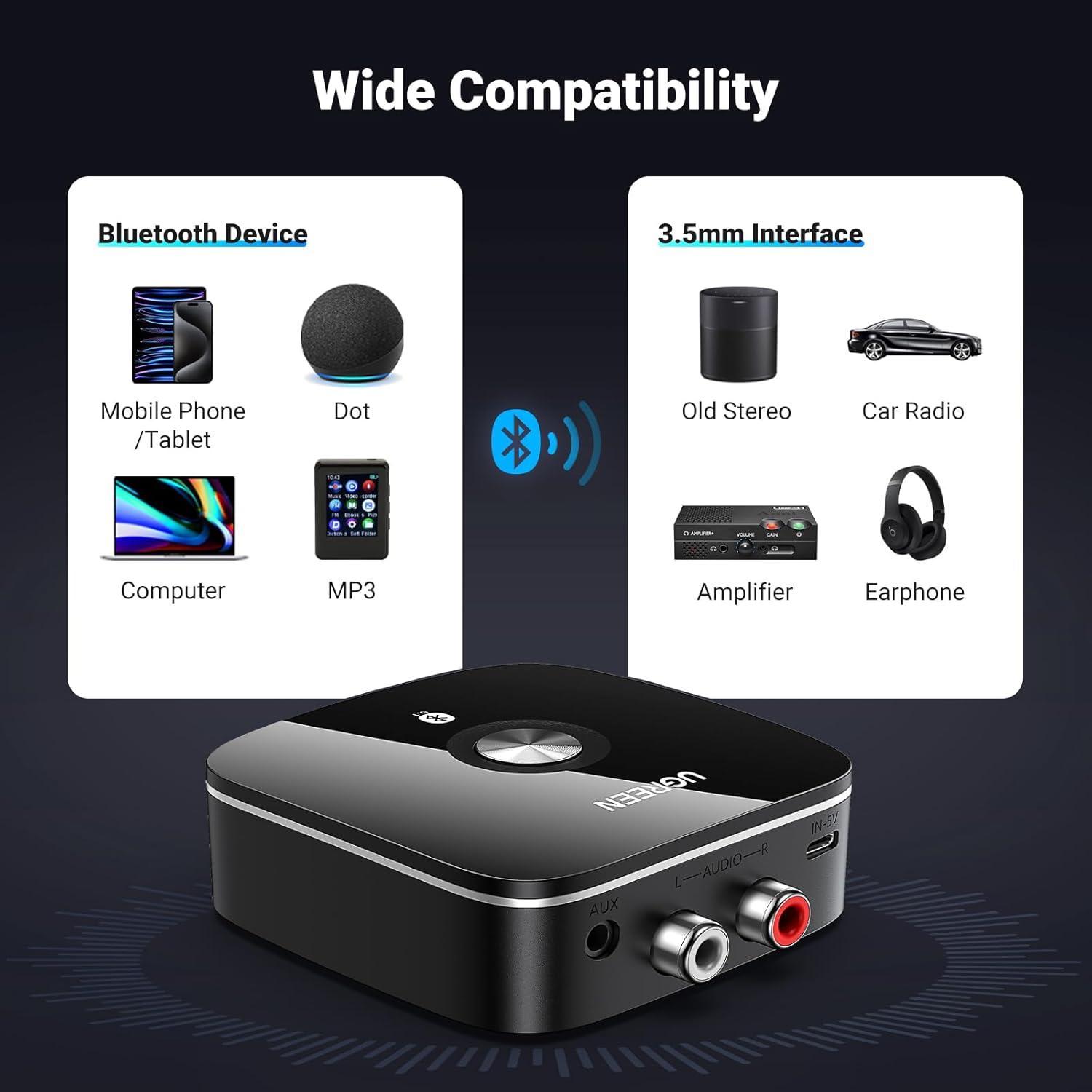 AUX 3.5mm/RCA audio receiver : There are 3.5mm or RCA output port for home old stereo speakers/wired headphones and more to connect mobile phones, computers, tablets to play music via Bluetooth. Turning ordinary audio equipment into Bluetooth devices and enjoying the music feast.