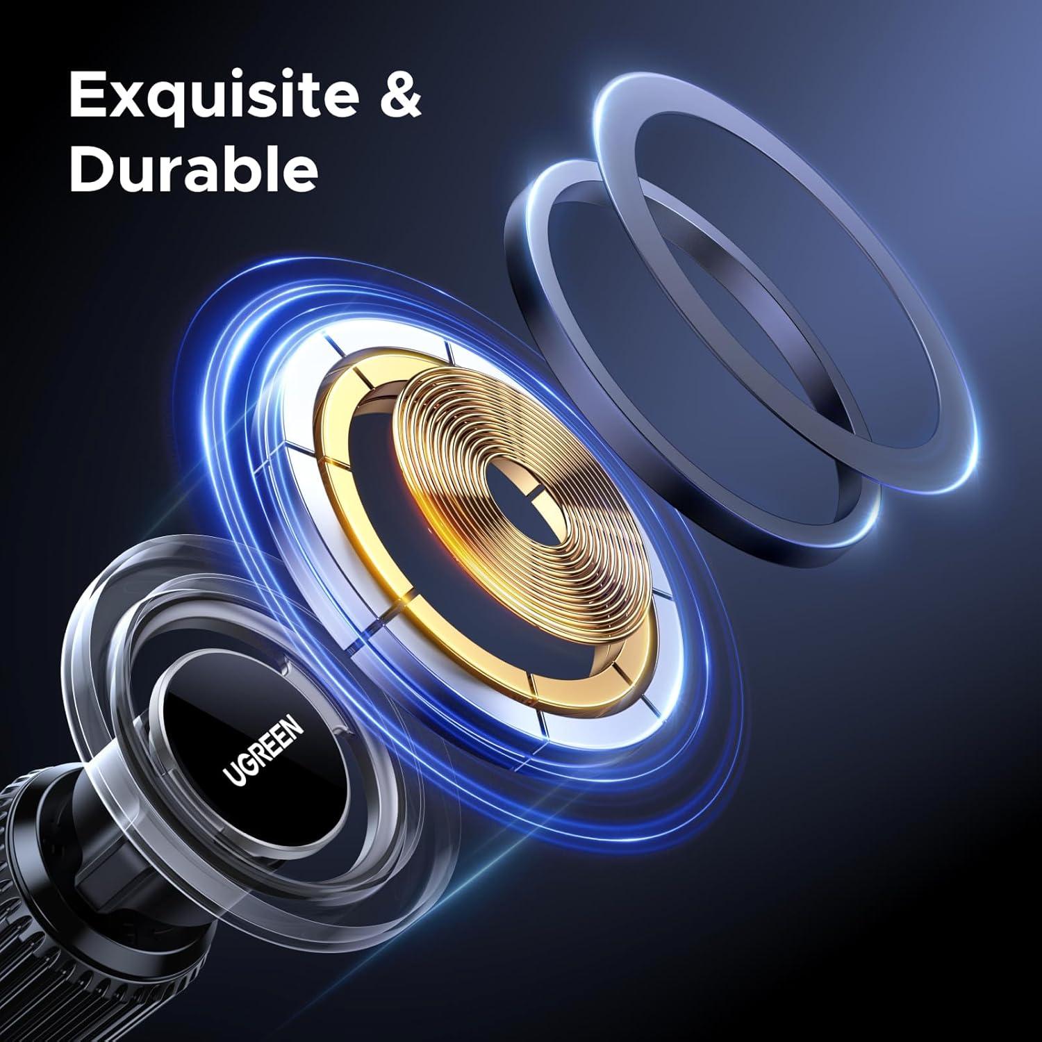 Upgraded Strong Magnet Strength: ugreen magsafe car mount has high-grade N52 magnet with holding force of 2500 g. It holds cell phone absolutely steadily even on bumpiest road