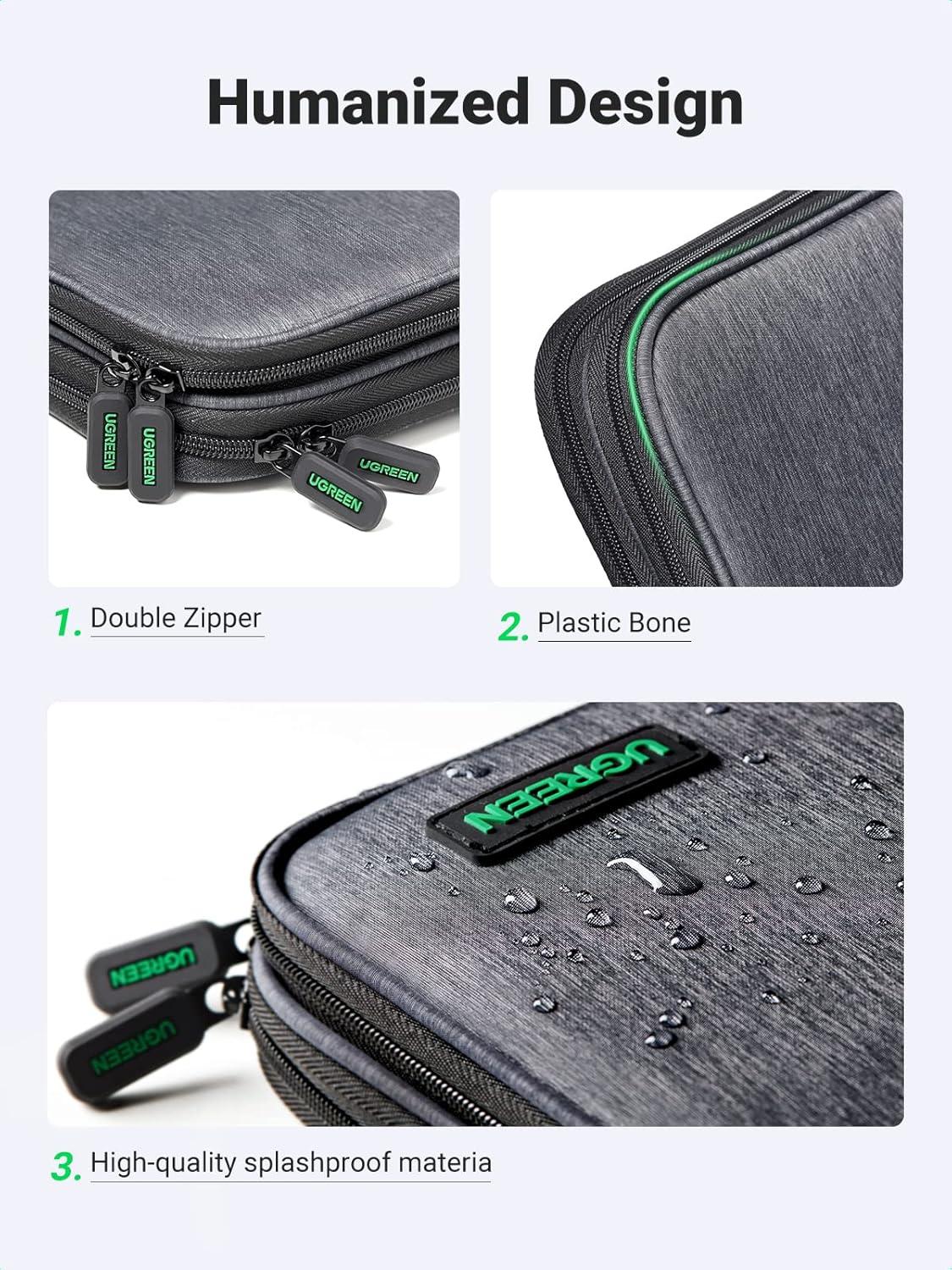 【Enhanced Durability with High Quality Material】 With heavy-duty nylon shell and soft inner lining, UGREEN travel organizer provides excellent protection and organization from scratches, dust, impact and accidental drops. Smooth double zippers design for quick access and management.