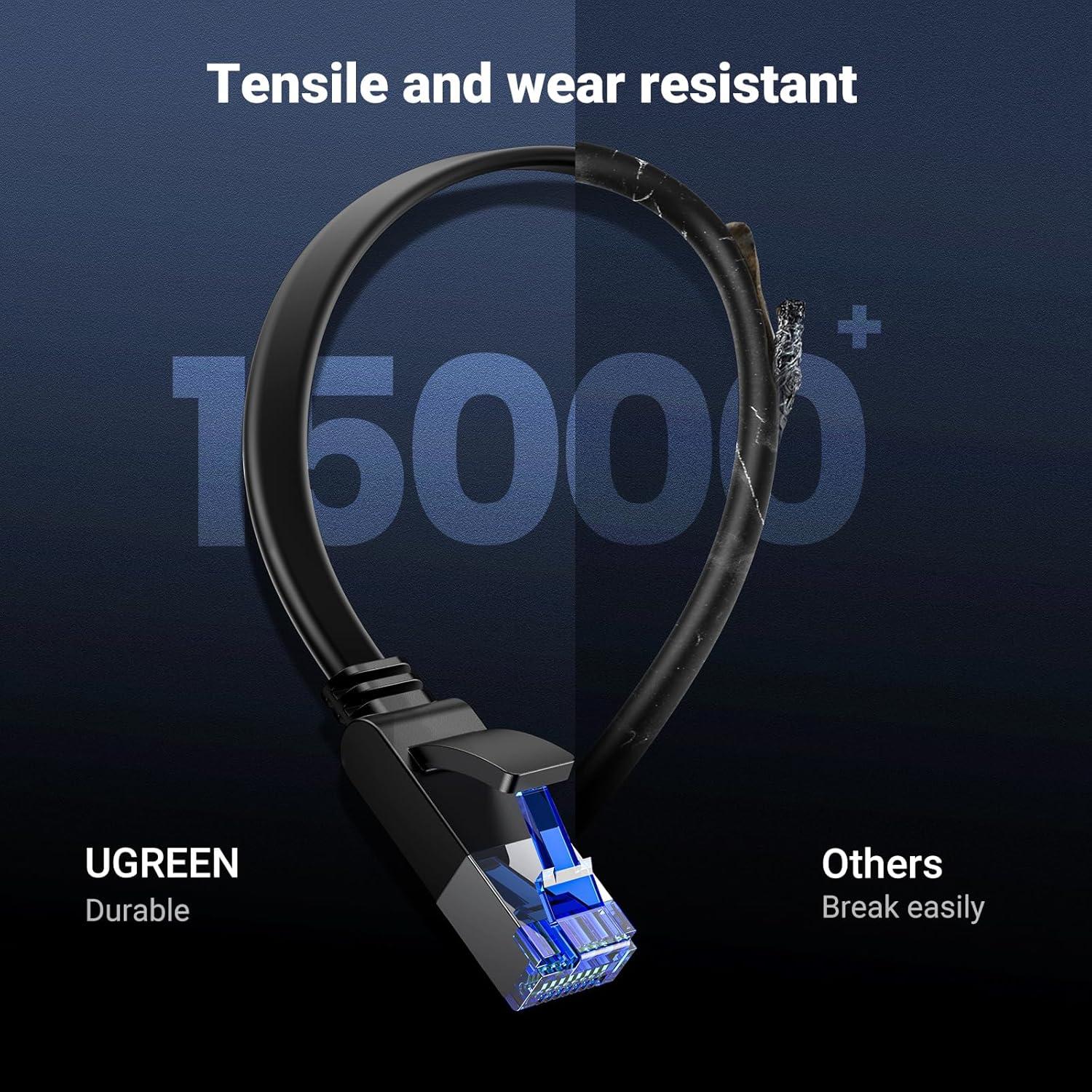 UGREEN Ethernet Cable 10FT, Cat 8 Ethernet Cable with 40Gbps 2000Mhz High Speed, Shielded Heavy Duty Flat Internet Cable Compatible for Gaming PC PS4/5/6 Xbox Modem Router, Include 20 Cable clipes(50FT)