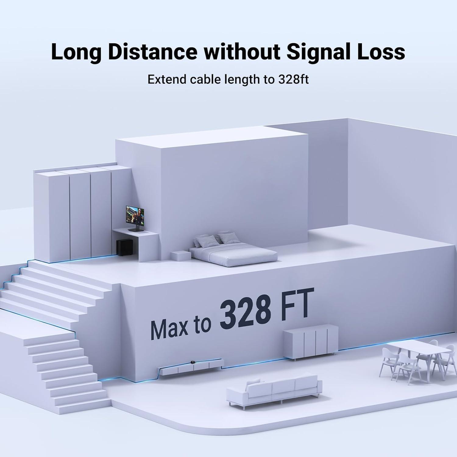328ft Effectively Extend: Ethernet extender is ideal for extending ethernet connection, and support up to 328ft long-distance transmission. Wire the house flexibly and smartly. Never worry about the network cable is not long enough anymore