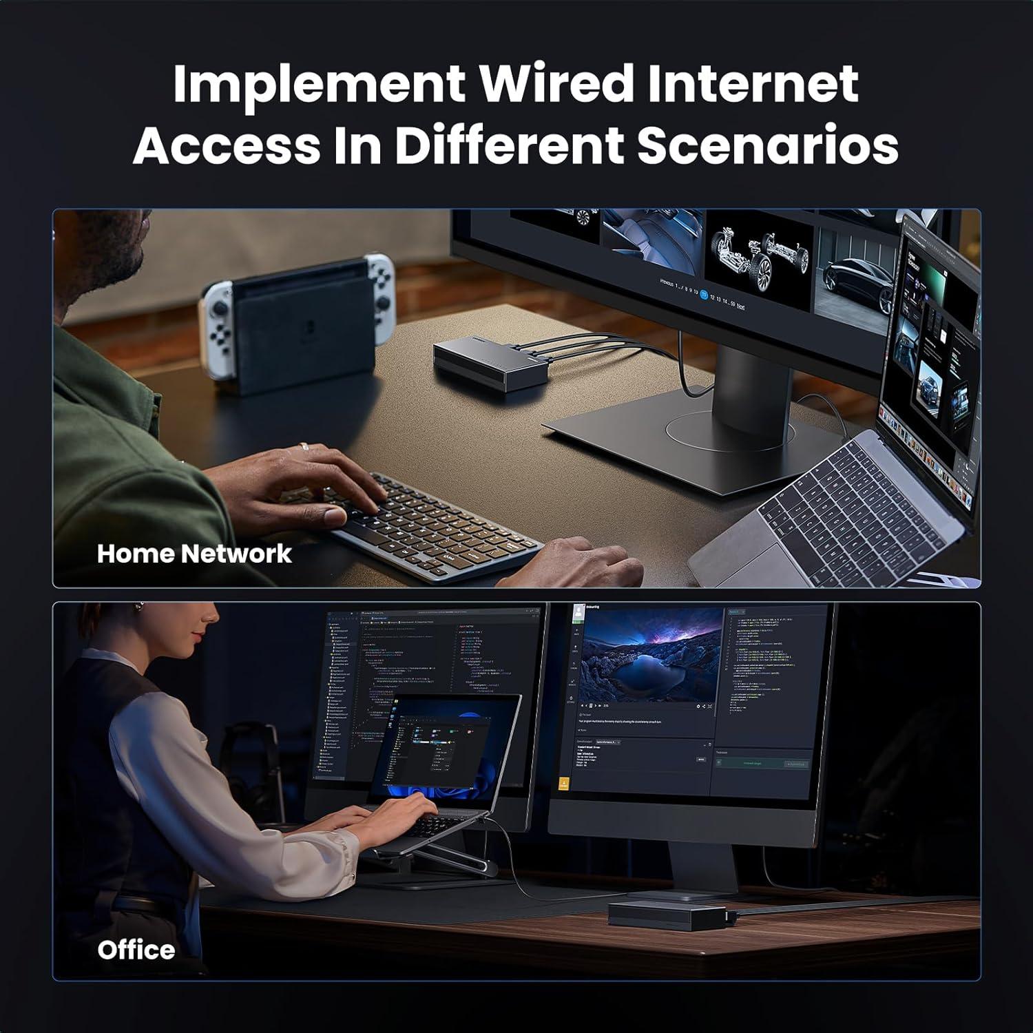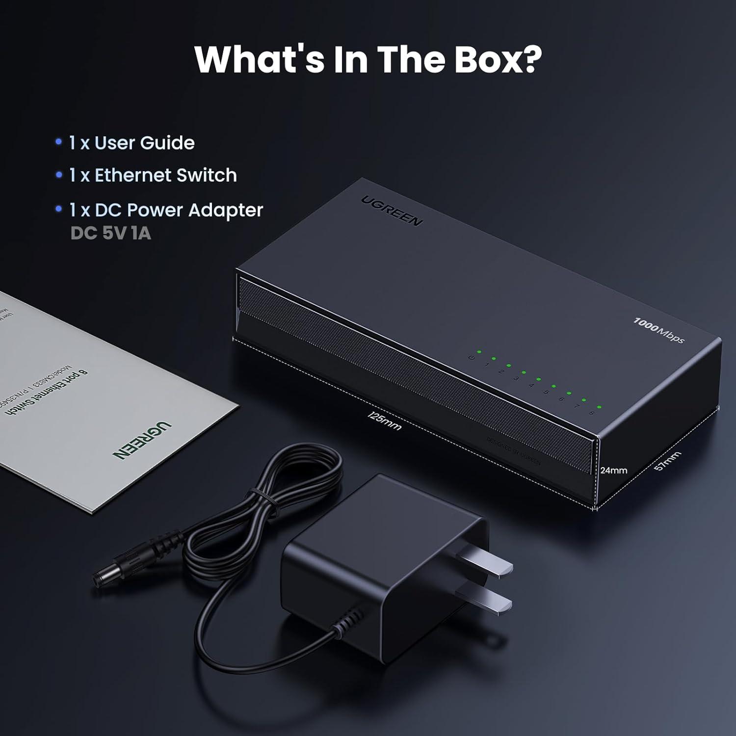 Expand Your Network: UGREEN ethernet switch with 5 Gigabit RJ45 ports has indicator lights, support automatic adjustment to the network speed of 10/100/1000Mbps, support full duplex and half duplex modes, and support automatic MDI/MDIX flip function