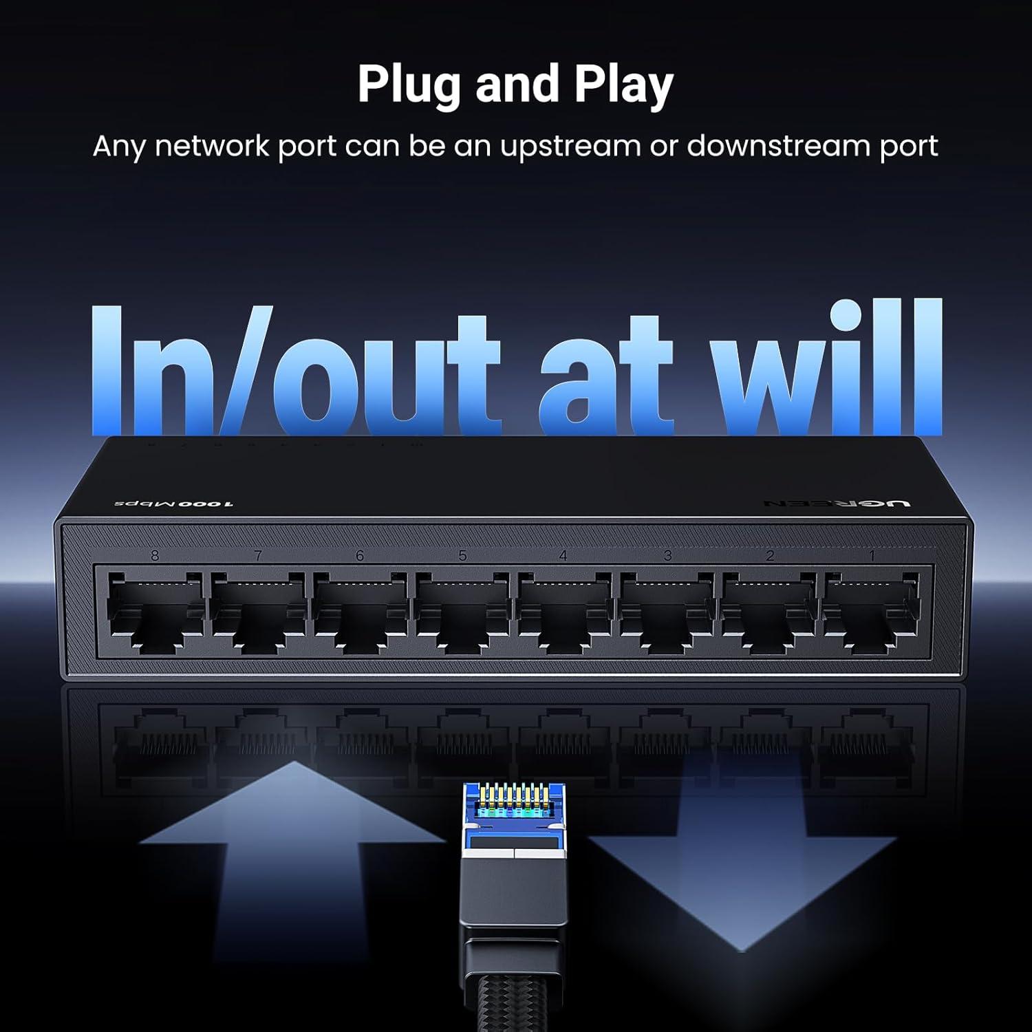 Plug and Play: The unmanaged ethernet switch is no driver required and easy to use, ensures a smooth connection with multiple devices. And any network port can be an upstream or downstream port. (POE is not supported)