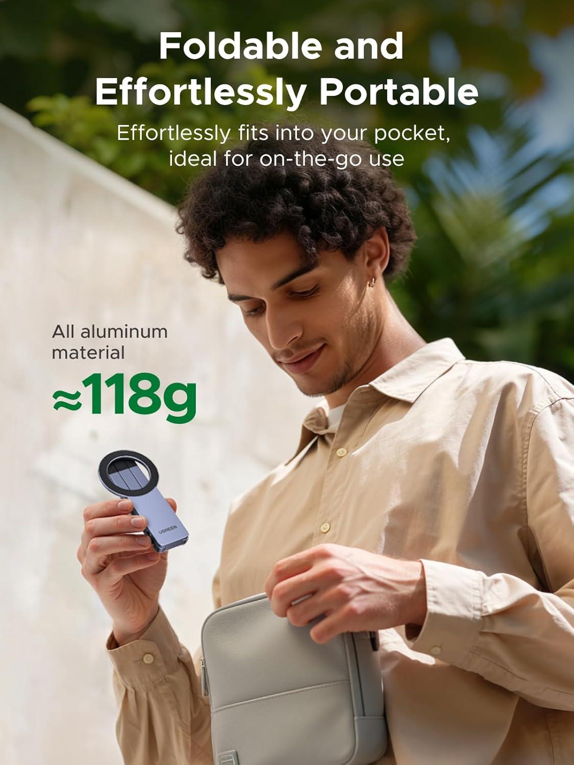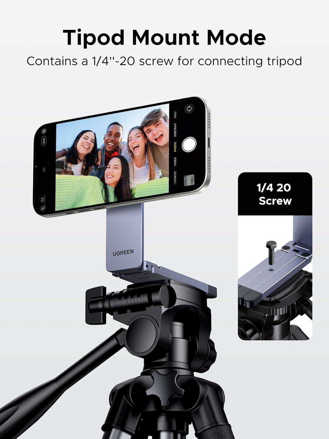 imageUGREEN for Magsafe Tripod 360 Rotating Adjustable Magnetic Phone Stand for 14 Screw Port Compatibility with iPhone 17 16 15 14 13 12 Pro Max Air Cell Phone StandTravel Essentials Accessories