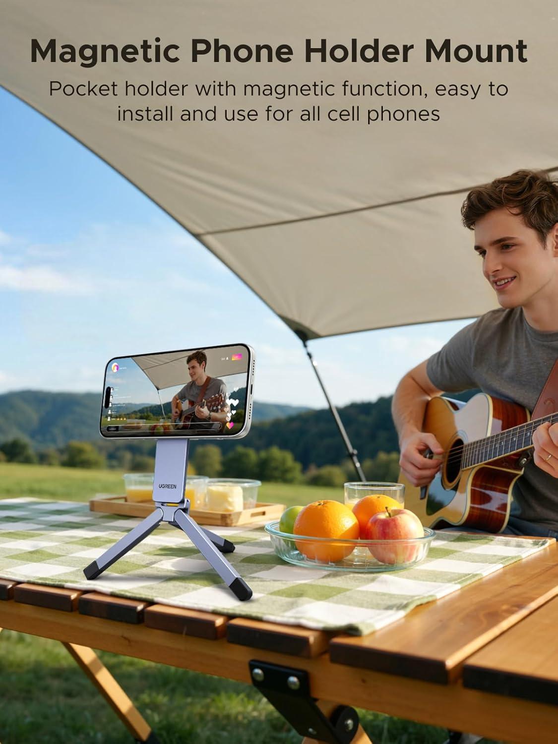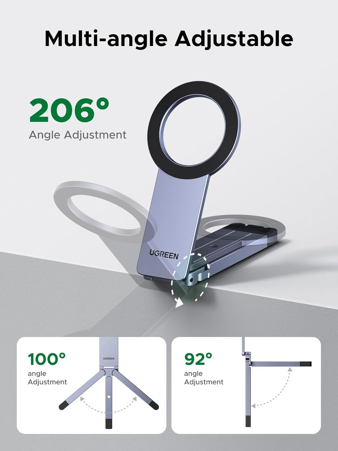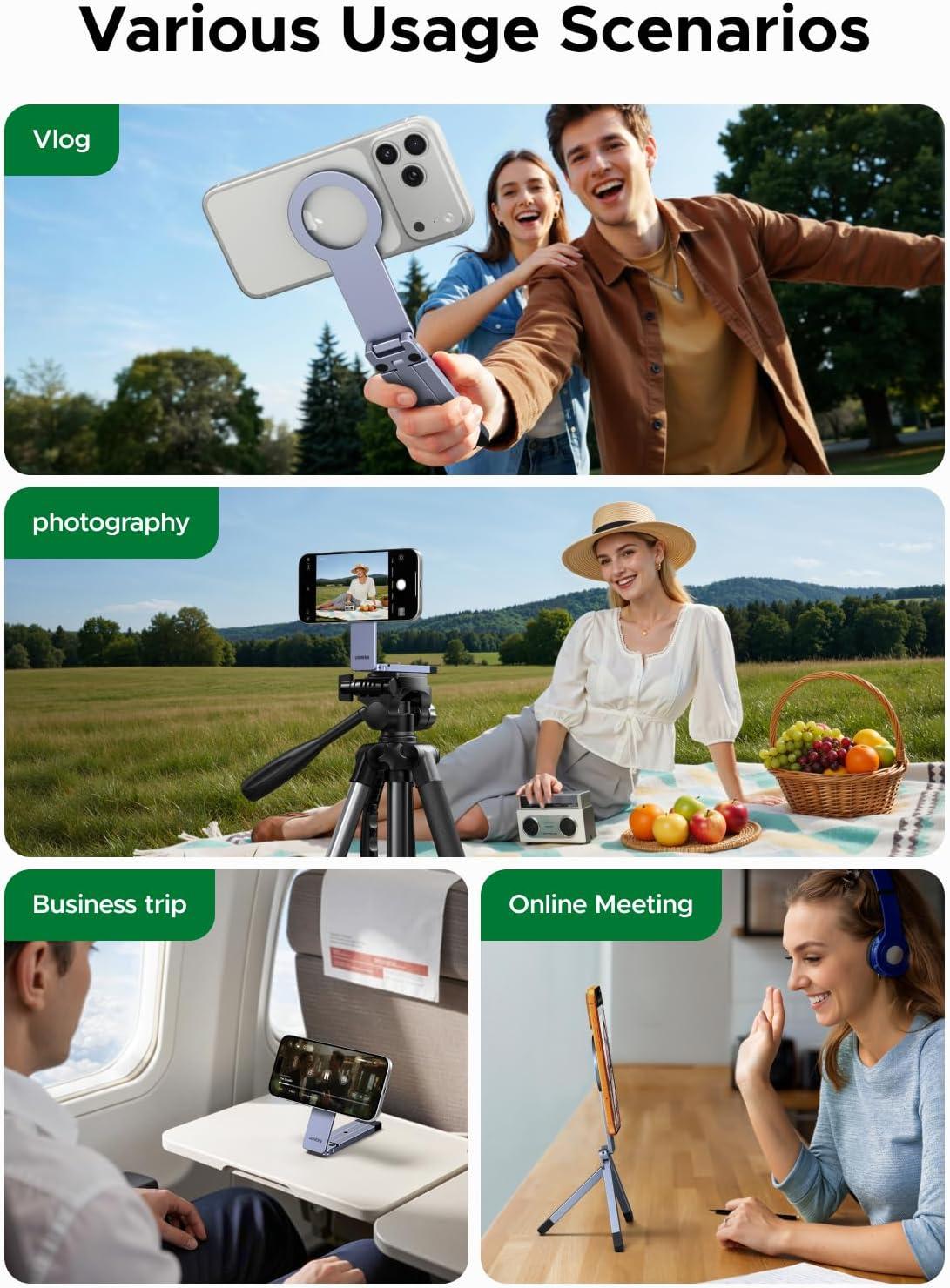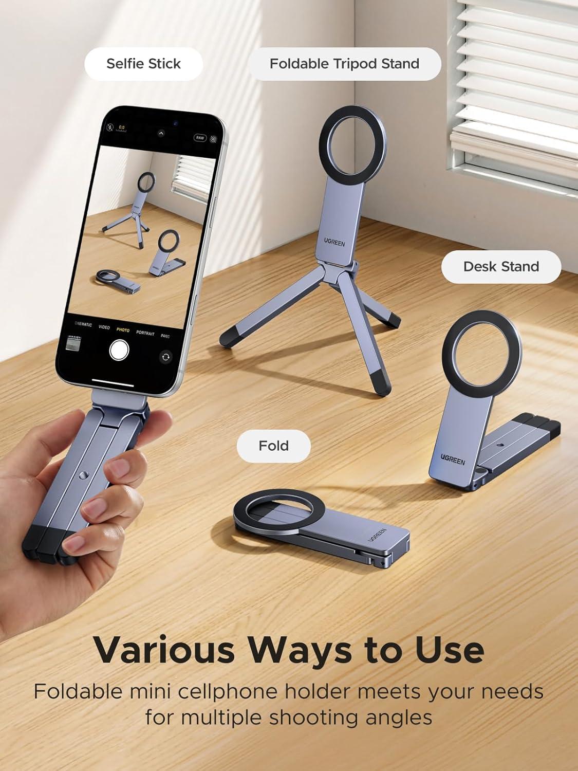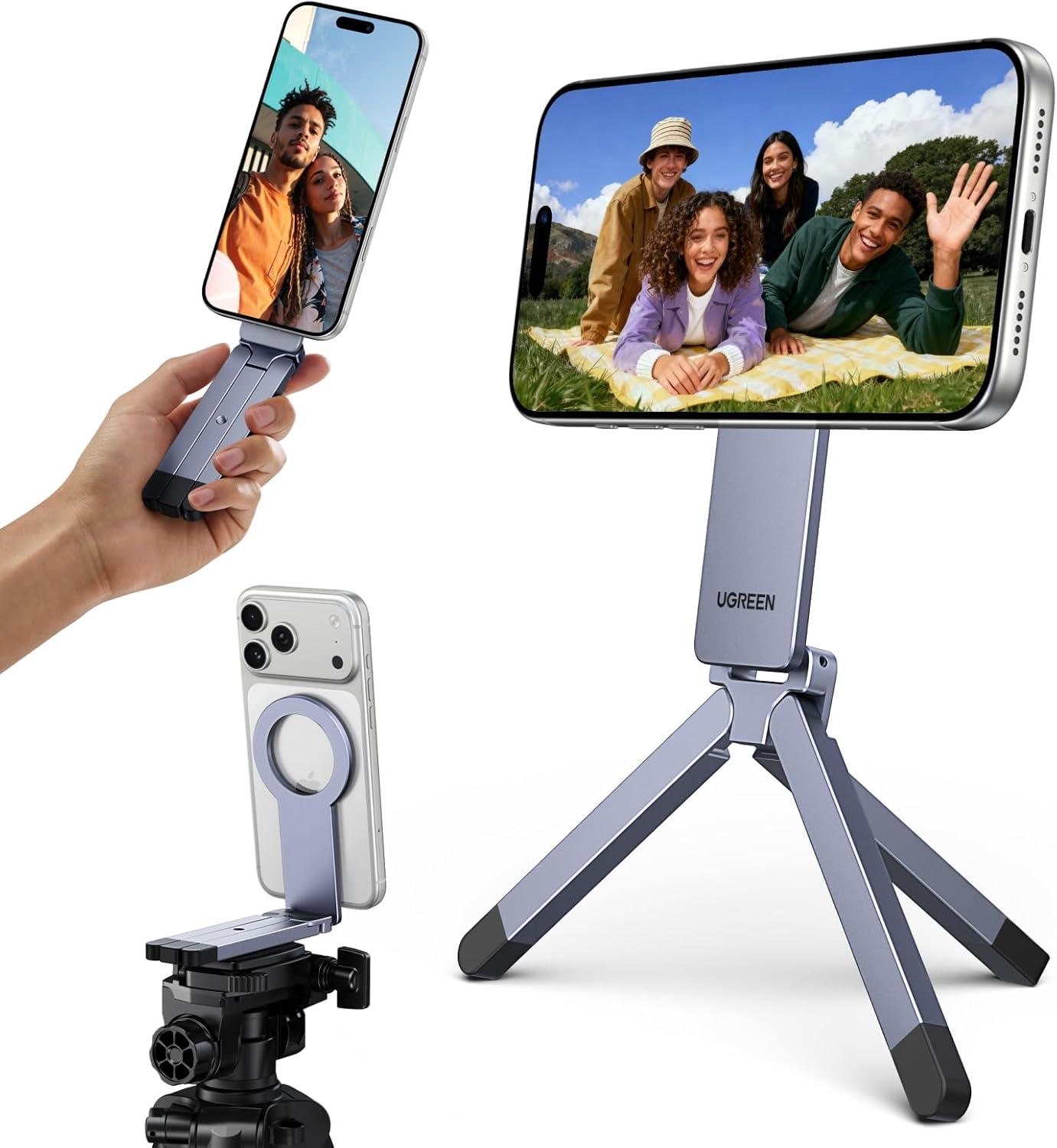 UGREEN for Magsafe Tripod 360° Rotating Adjustable Magnetic Phone Stand for 1/4'' Screw Port Compatibility with iPhone 17 16 15 14 13 12 Pro Max Air, Cell Phone StandTravel Essentials Accessories