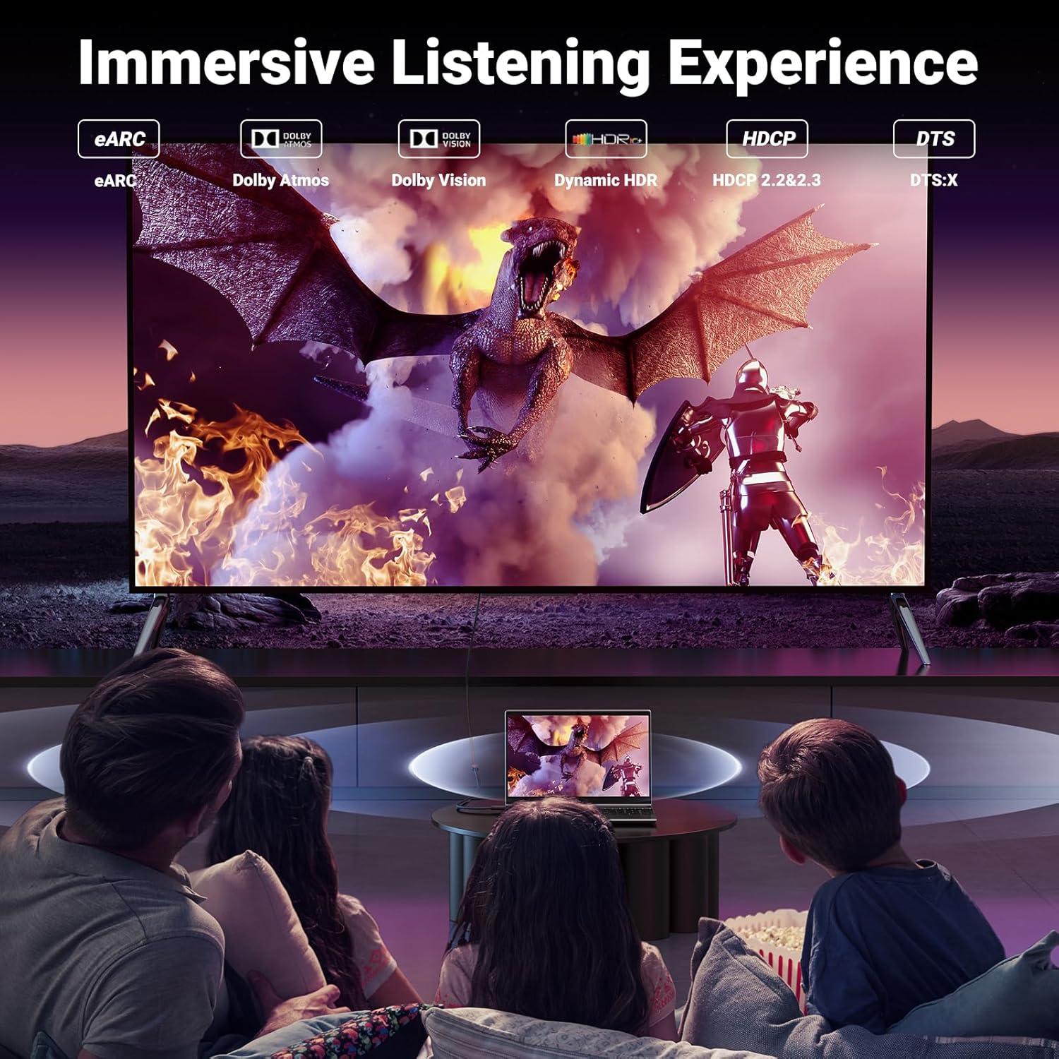Ultra High Speed Cable: The 8K HDMI 2.1 extender cable has a data transmission speed of up to 48Gbps, almost 2.6× the speed of HDMI 2.0. Support resolution up to 7680 x 4320, refresh rate up to 10K@60Hz, 8K@60Hz, 4K@240Hz, Dynamic HDR. Support VRR ALLM with smoother game experience. Provide you with the most streamlined projection and home theater visual experience