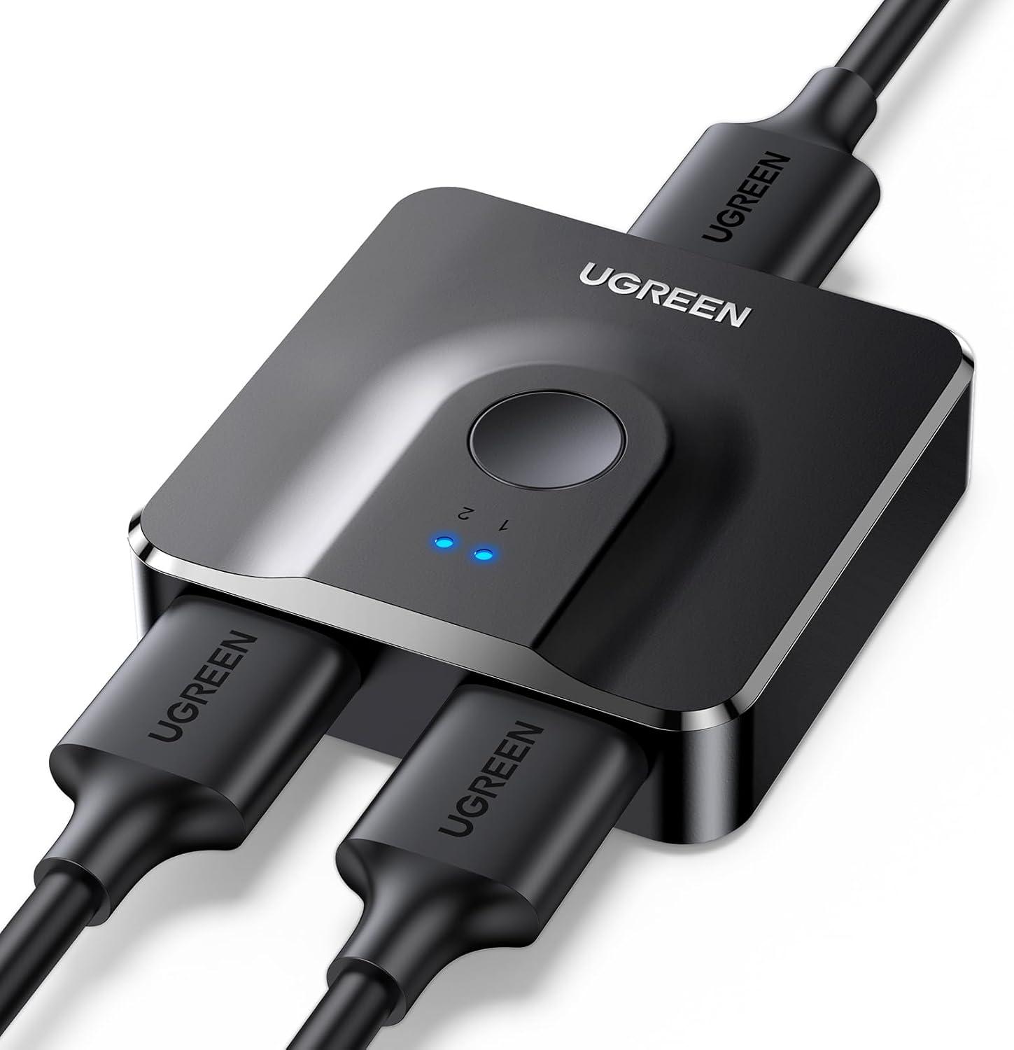 UGREEN HDMI Switch 4K@60Hz, Bi-Directional HDMI Switcher 2 in 1 Out HDMI Splitter 1 Input 2 Output Supports UHD 3D HDR Compatible with PS5, PS4, Xbox Series X/S, Roku, Fire Stick, Grey(Black)