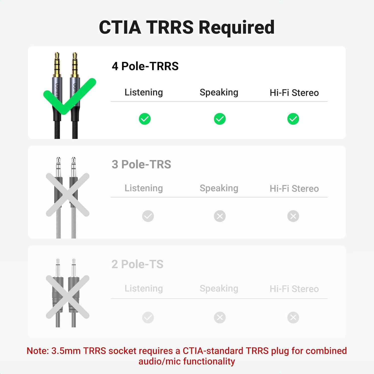 Hi-Fi Stereo Sound: This 3.5mm splitter with polished 24K Gold-plated connectors, oxygen-free copper wire ensures higher audio transmission without signal loss and noise. So the headset adapter remains original sound quality, offers better gaming and communication experience. Note: For functional microphone output, a 3.5mm CTIA-compliant TRRS cable is required. (OMTP/other standards will cause mic failure)