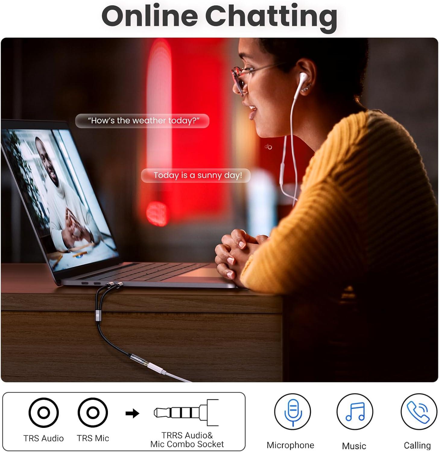 2 to 1 Mic Headphone Splitter: UGREEN Headphone Audio Splitter offers a simple way to connect headsets of 4-pole 3.5mm TRRS plug to PC or laptop with separate audio and mic jack, use with VOIP applications, such as Skype or chat programs, MSN Messenger, online gaming, classes online and teams meetings. For example, connect turtle beach recon 50 gaming headsets to PC via the headphone splitter for computer