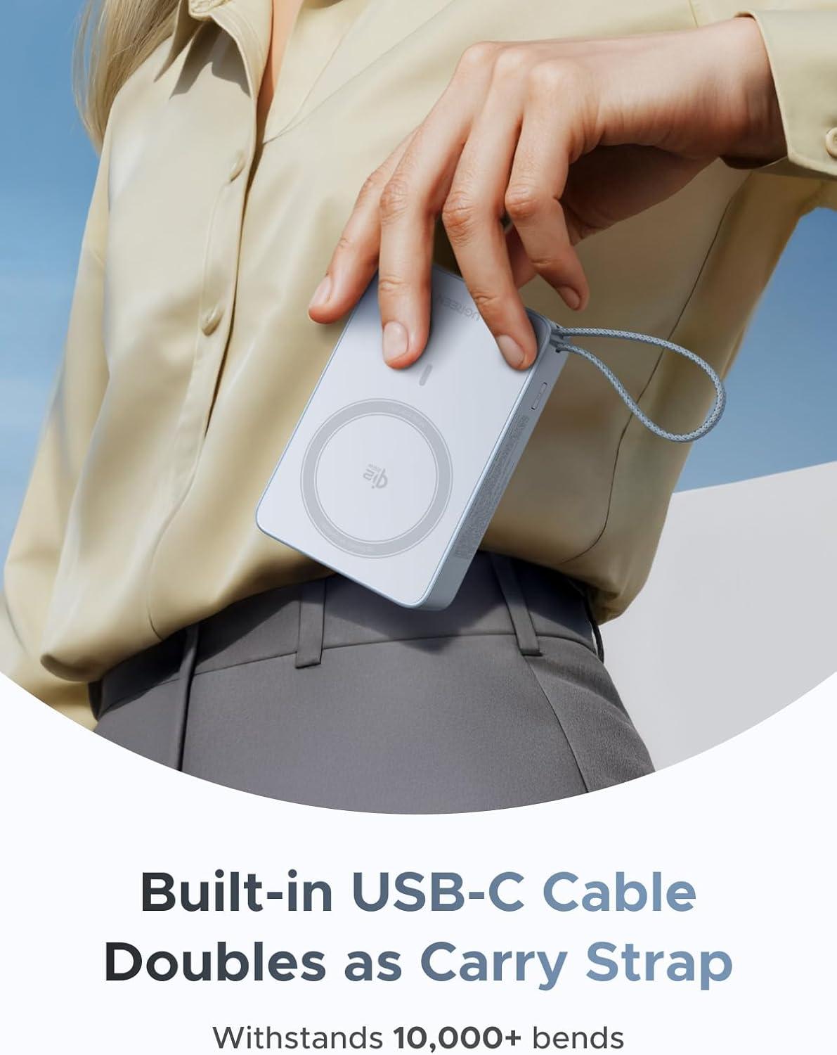 45W USB-C Fast Charging with Built-in CableThe integrated USB-C cable delivers up to 45W for fast charging laptops, tablets, and other devices. The cable also works as a carry strap for easy transport without tangled wires, both indoors and outdoors.