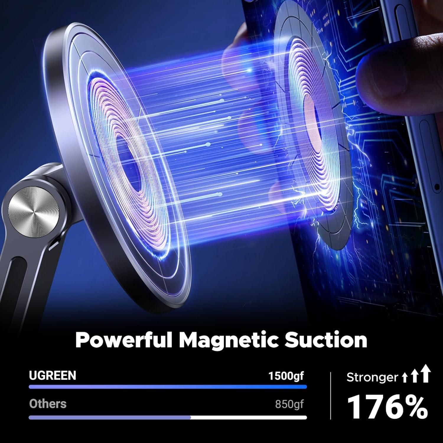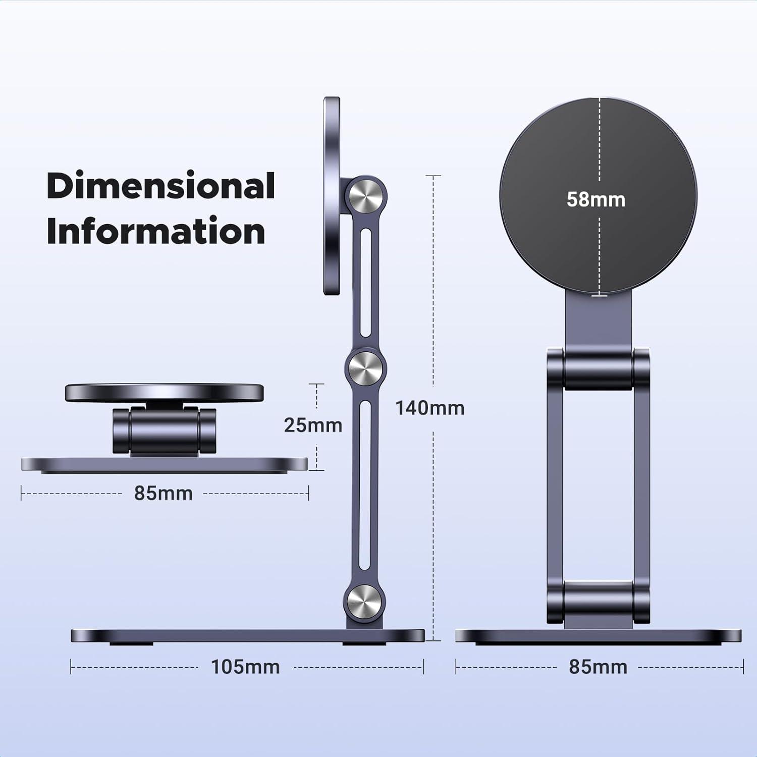 Powerful Magnet: UGREEN magnetic phone stand for desk built-in strong magnets that firmly fix iPhone 12 and above devices or MagSafe accessories to phone stand. Only need to bring the device close to the Magsafe cell phone stand, and it will be accurately and firmly absorbed by phone stand, making it easy to install and disassemble in one second. It is more convenient and safer than traditional phone stands. Please note that this product does not support MagSafe charging !!!