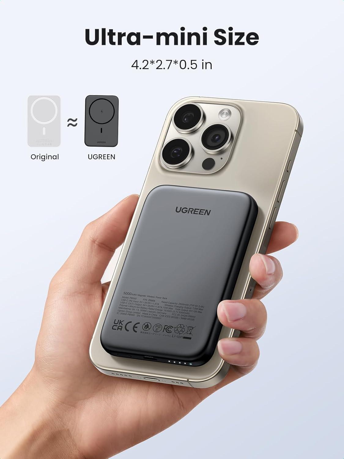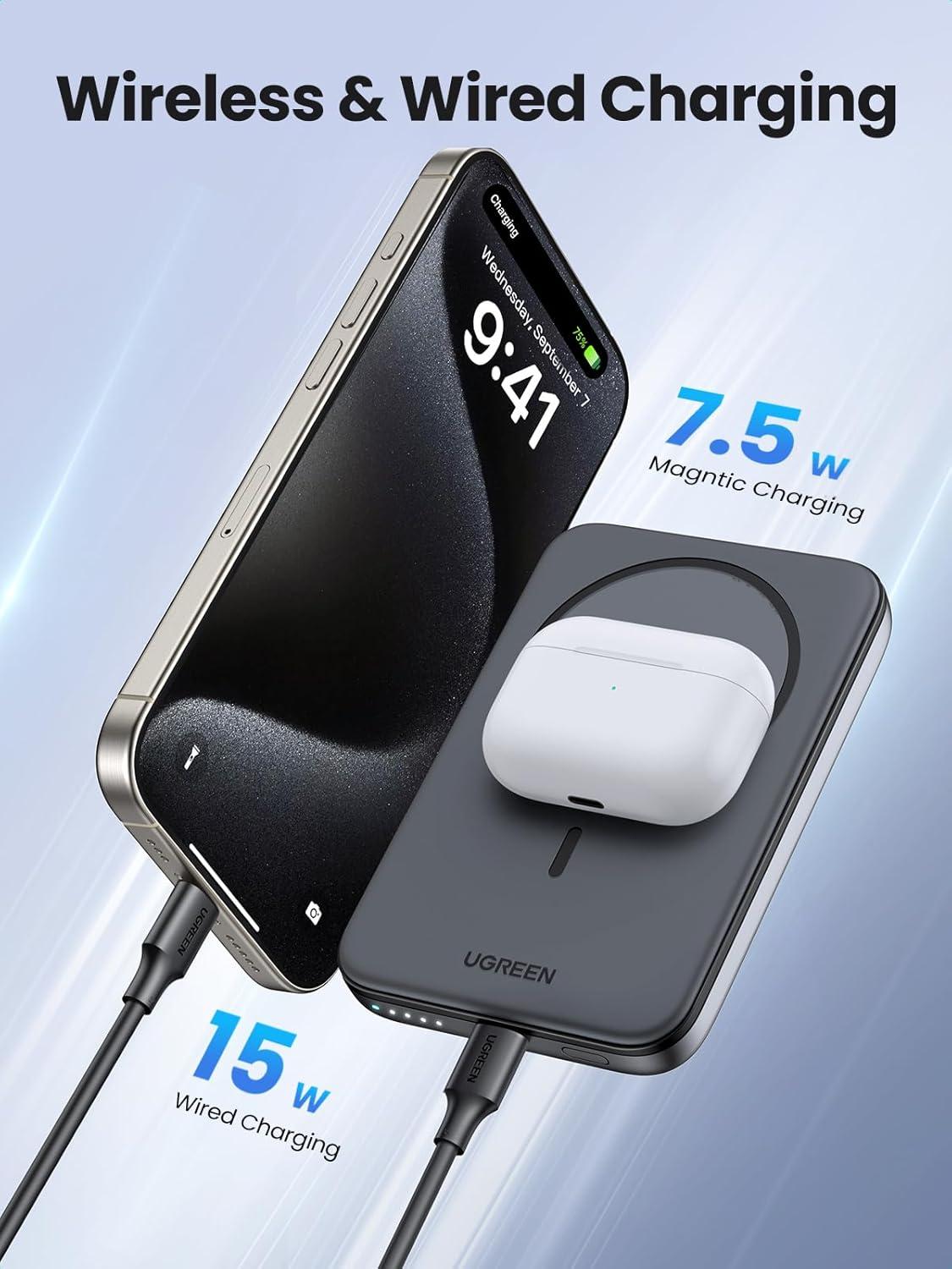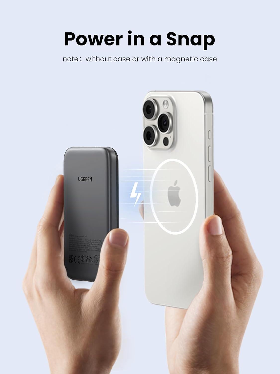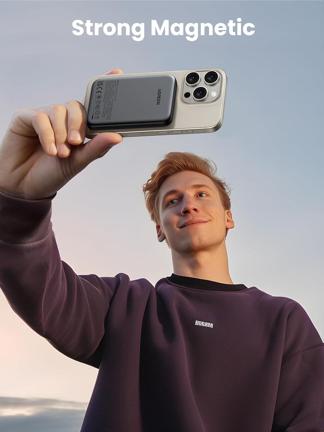 Perfect for iPhone 17-12 Series:This UGREEN magsafe power bank features a strong built-in magnet that snaps securely to your iPhone, delivering stable wireless charging without slipping. Enjoy the convenience of a magsafe charger for streaming, gaming, or making video calls anytime, anywhere.