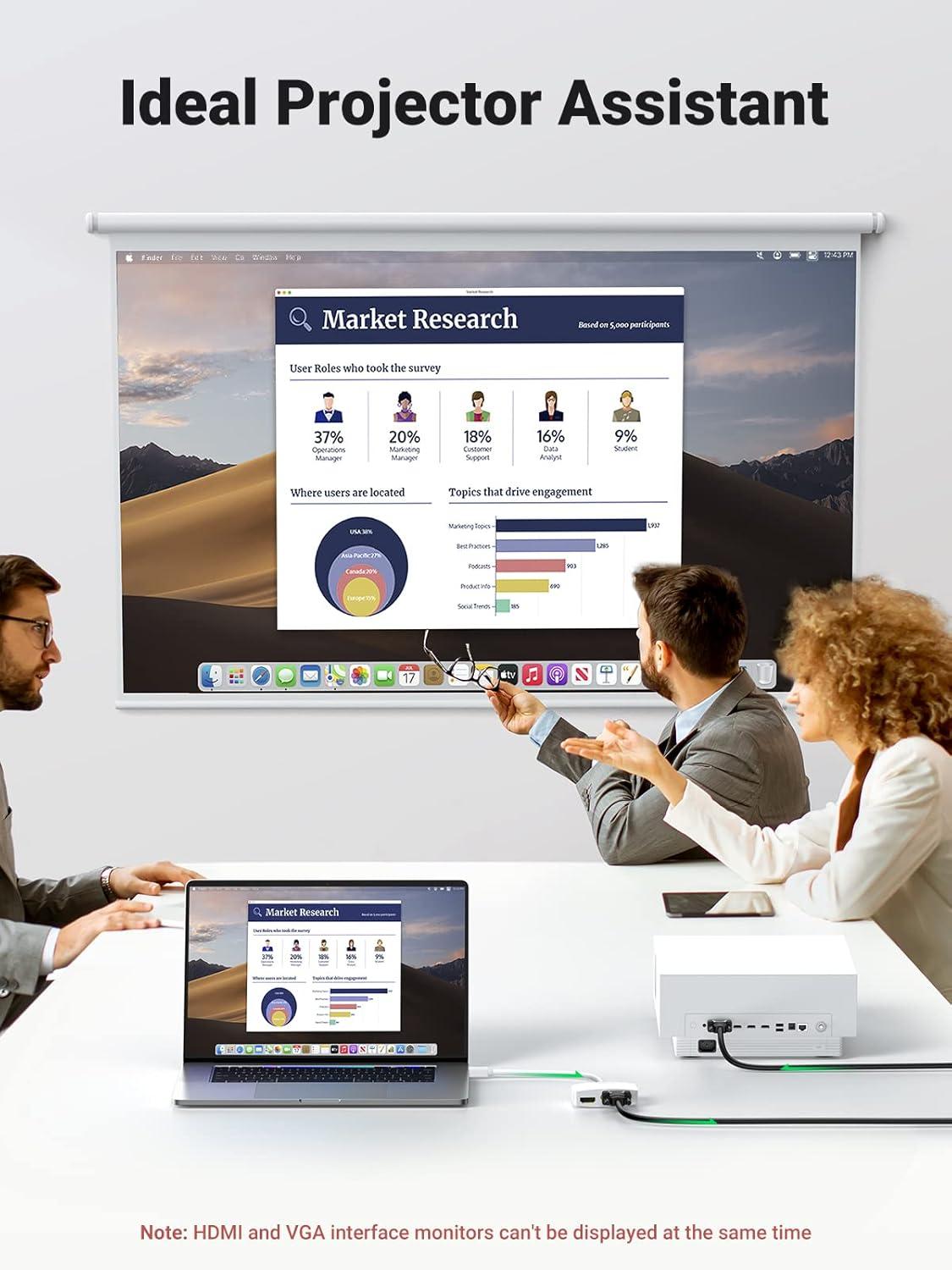 Mirror and Extend Modes: This UGREEN Mini DisplayPort to HDMI VGA adapter converter supports Mirror and Extend modes, ideal for sharing information in an office or at a meeting under mirror mode; and good choice for extending a workstation and showing a different screen on a laptop and display under extend mode