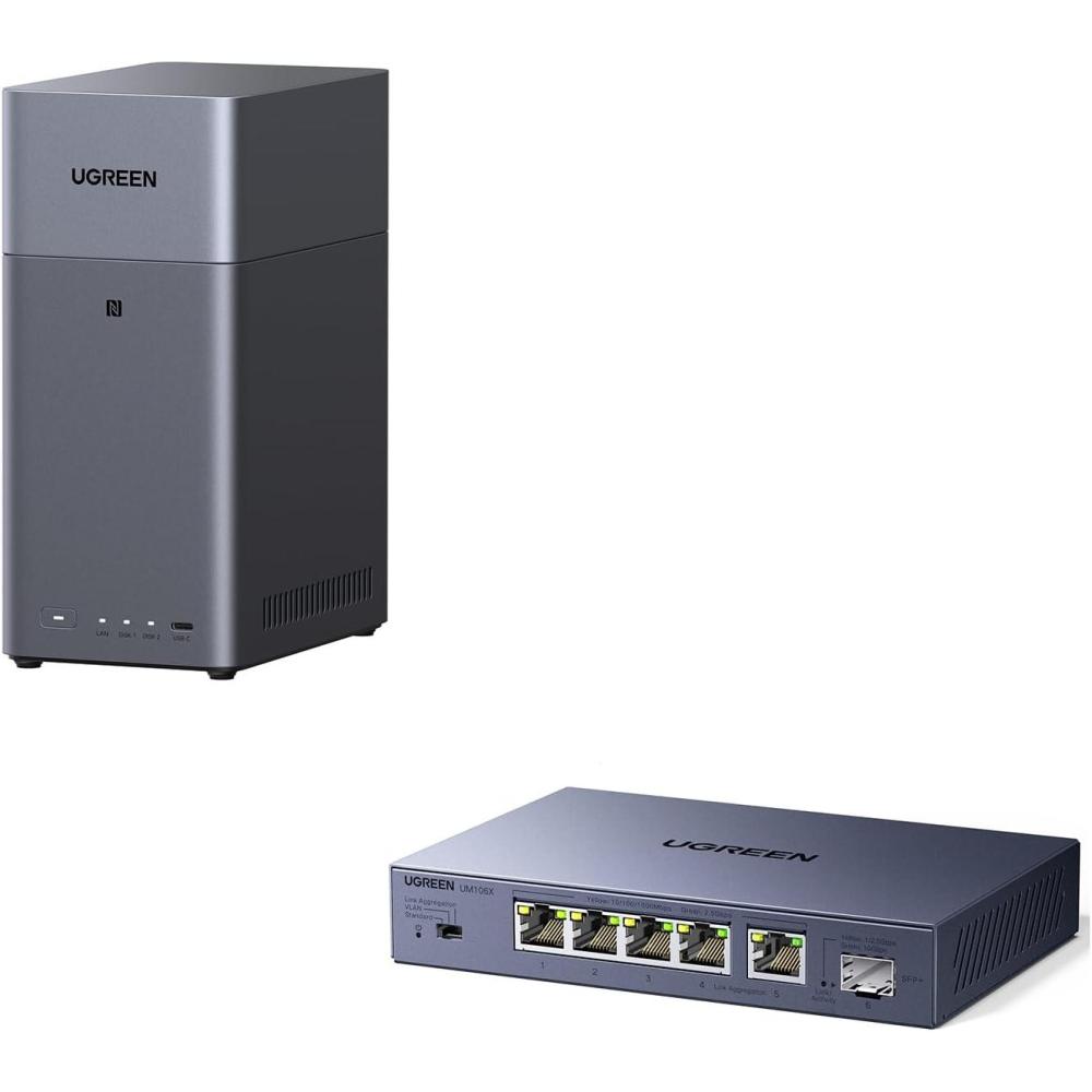 UGREEN NASync DH2300 2-Bay Desktop NAS Bundle with 2.5gb Switch