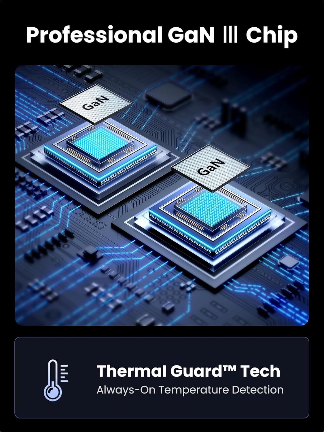 GaN Tech Safety Protection: Adopting GaN technology, this 300W 5-Port USB C charger offers enhanced safety features, guarding against overcurrent, overheating, and short circuits