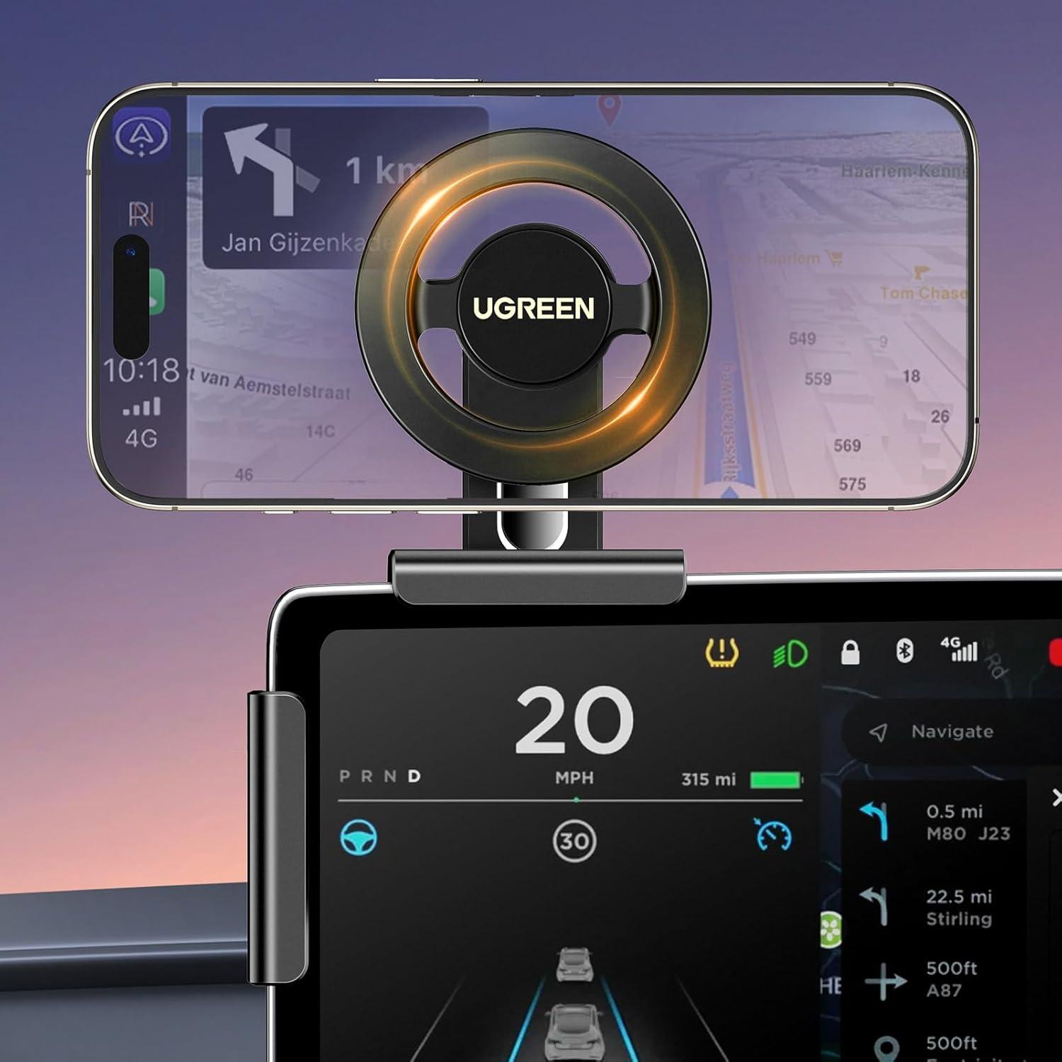 UGREEN Phone Holder for Tesla Model 3 Y MagSafe Magnetic Phone Mount Holder Strongest Magnet Power Compatible with iPhone 17 16 15 14 13 Plus Pro Max Series