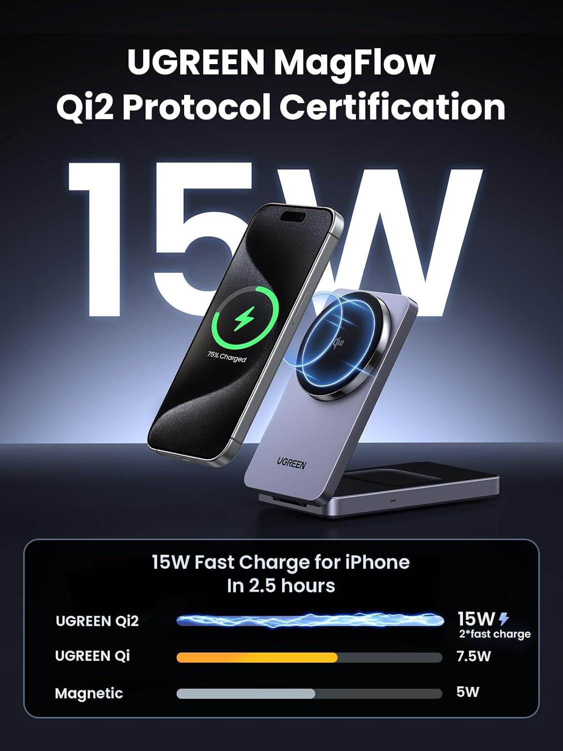 Be the first to review “UGREEN Qi2 15W MagFlow Wireless Charger, 2-in-1 MagSafe Fast Charging Station, Foldable Charger Stand for iPhone 17/16/15/14/13/12 Series, AirPods 4/3/2/Pro, with a 3.3FT USB C Charging Cable”
