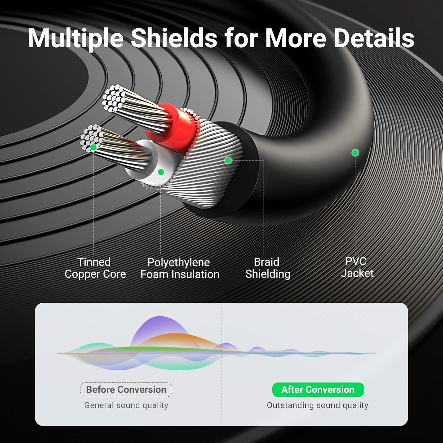 Bi-Directional Design: UGREEN 3.5mm to Red and White Audio Cable can both work for 3.5mm to 2RCA Phono or 2RCA to 3.5mm Aux. Besides, red and white color-marked connectors ensure you can make quick, easy left-and-right hookups