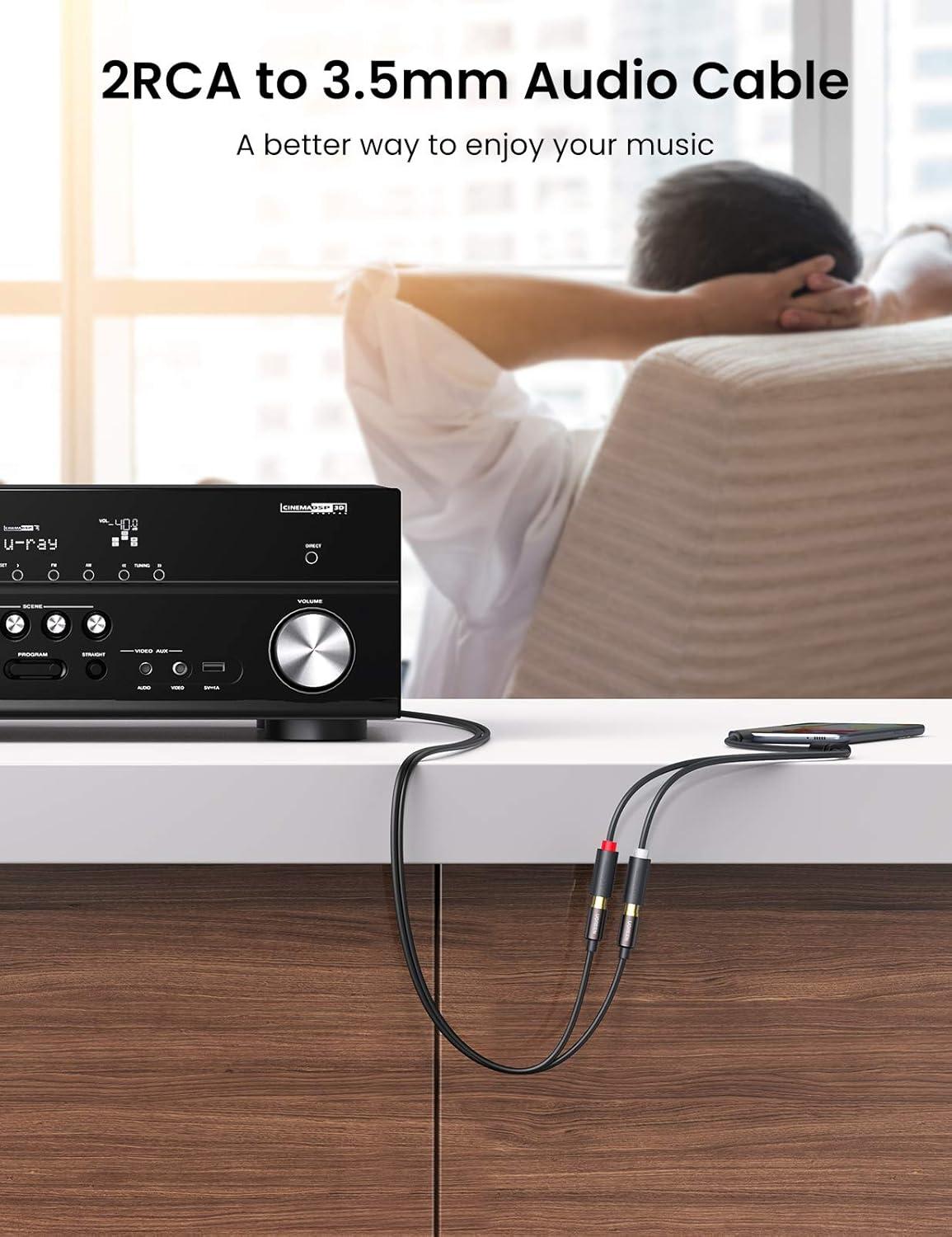 3.5mm Male to RCA Female Audio Cable: UGREEN 3.5mm Aux male to 2 RCA female adapter enables you to connect a smartphone with the 3.5mm audio port to a TV or amplifier