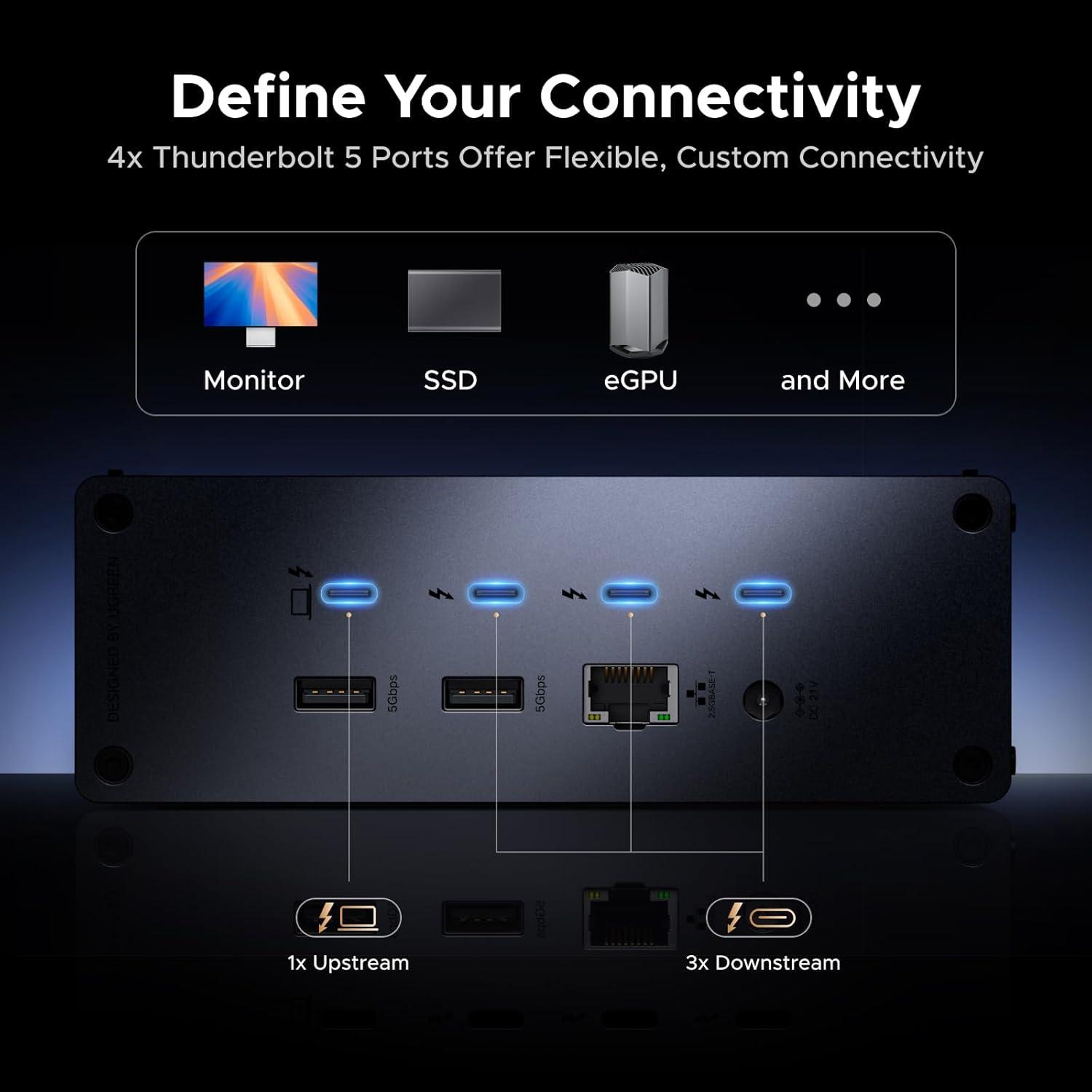 120Gbps Thunderbolt 5 Speed: Certified by Intel, 4x Thunderbolt 5 ports deliver blazing 120Gbps transfers—theoretically move a 21GB file in just 2 seconds. Ideal for large video edits, 3D rendering, or data-heavy workflows.