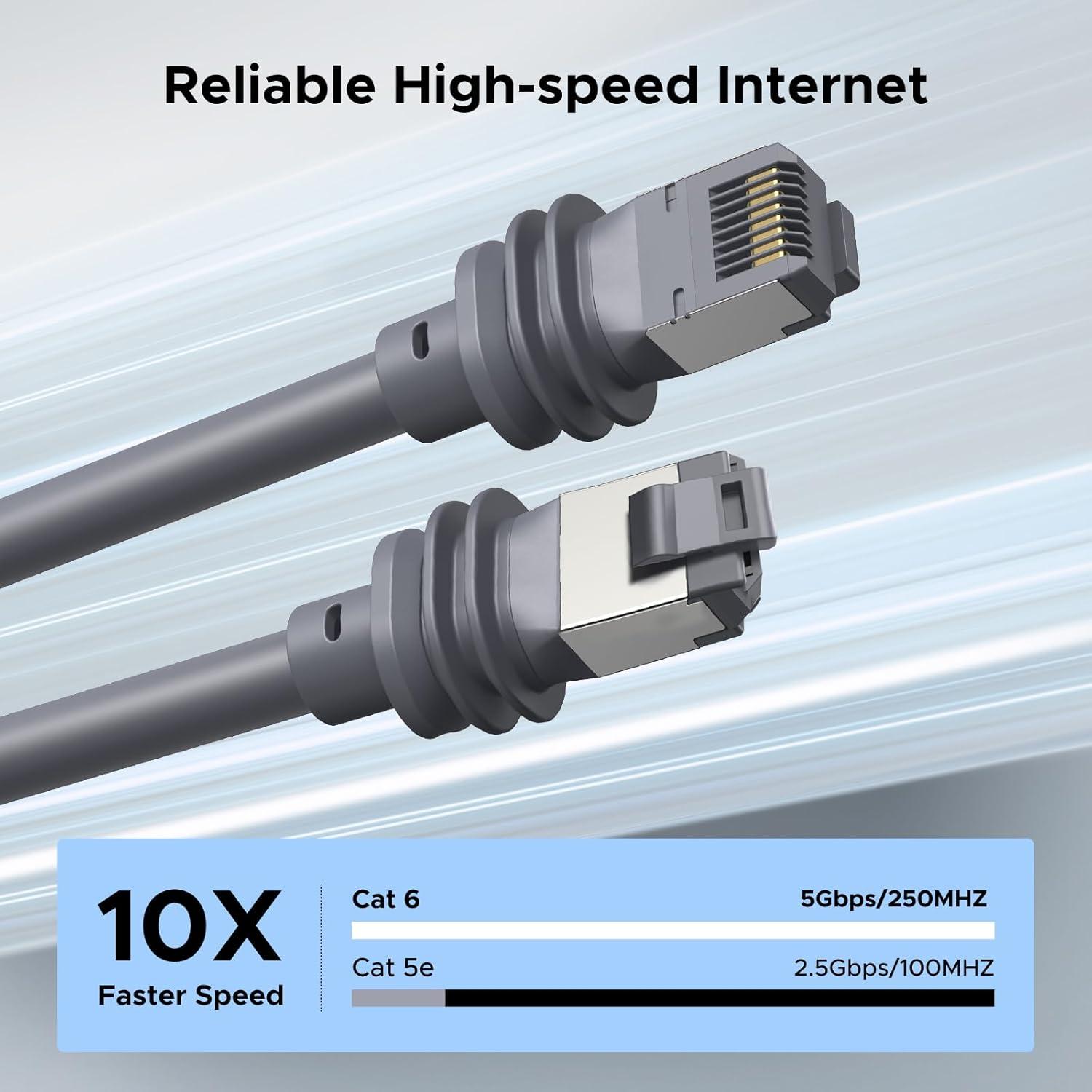 Cat 6 High-Speed Performance: Starlink cable delivers up to 5Gbps data transfer speed and 250MHz bandwidth, meeting Cat 6 standards for smooth streaming, gaming, and high-bandwidth activities with minimal lag