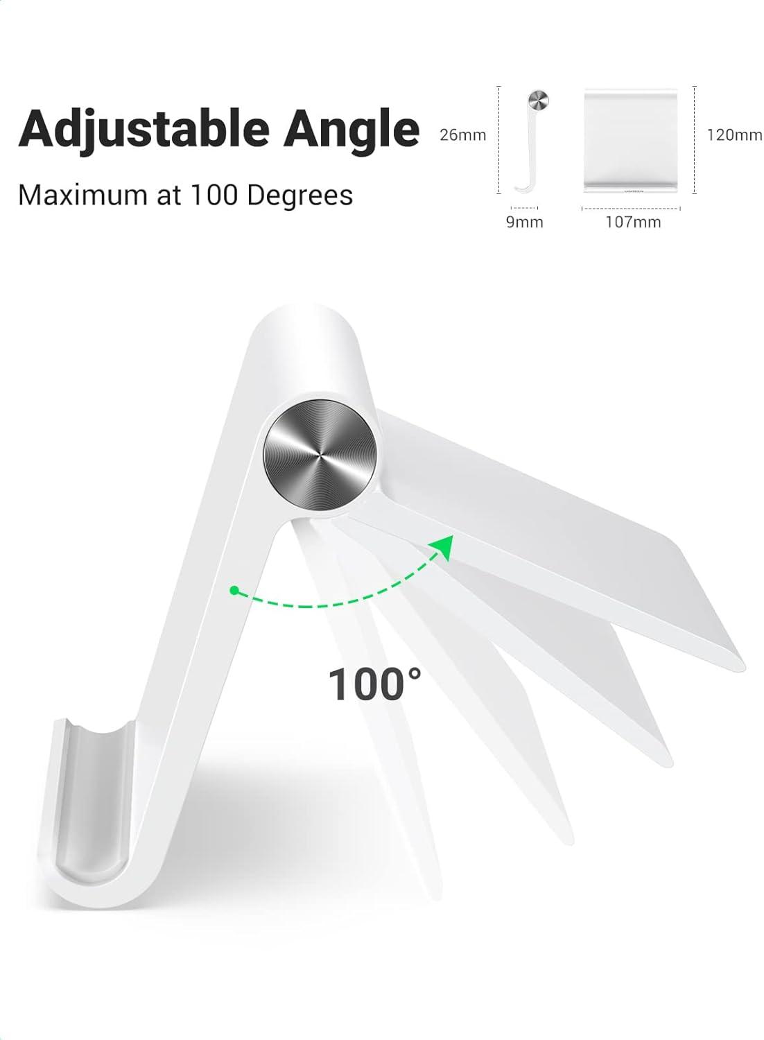UGREEN Tablet Stand Holder Adjustable Portable Desktop Dock Office Compatible with iPad Pro 11 9.7 10.5 Air Mini 5 4 3 2 iPhone 17 16 15 14 13 12 Black(White)