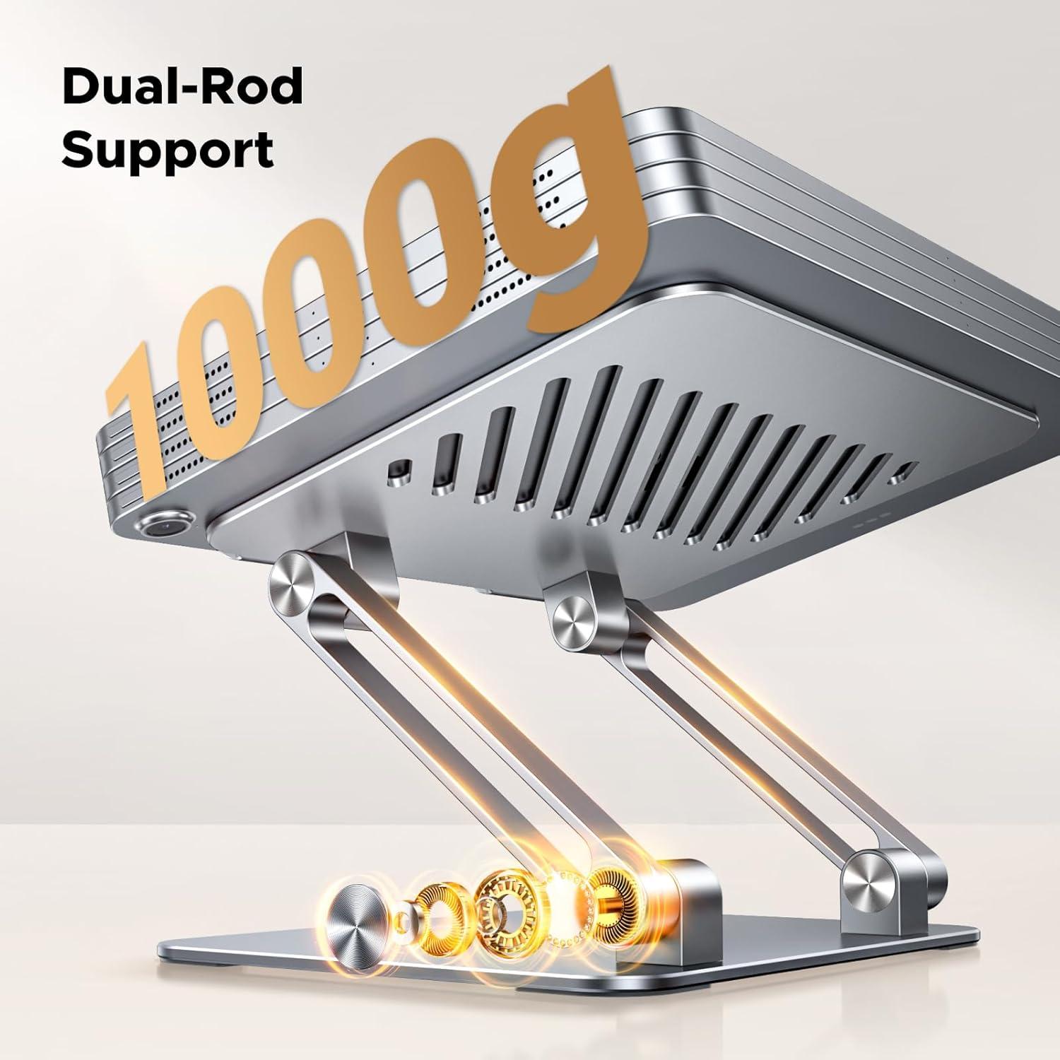 More Sturdy Design: Made of sturdy aluminum alloy metal for stability and durability. Dual rod Design gives your tablet a stable home