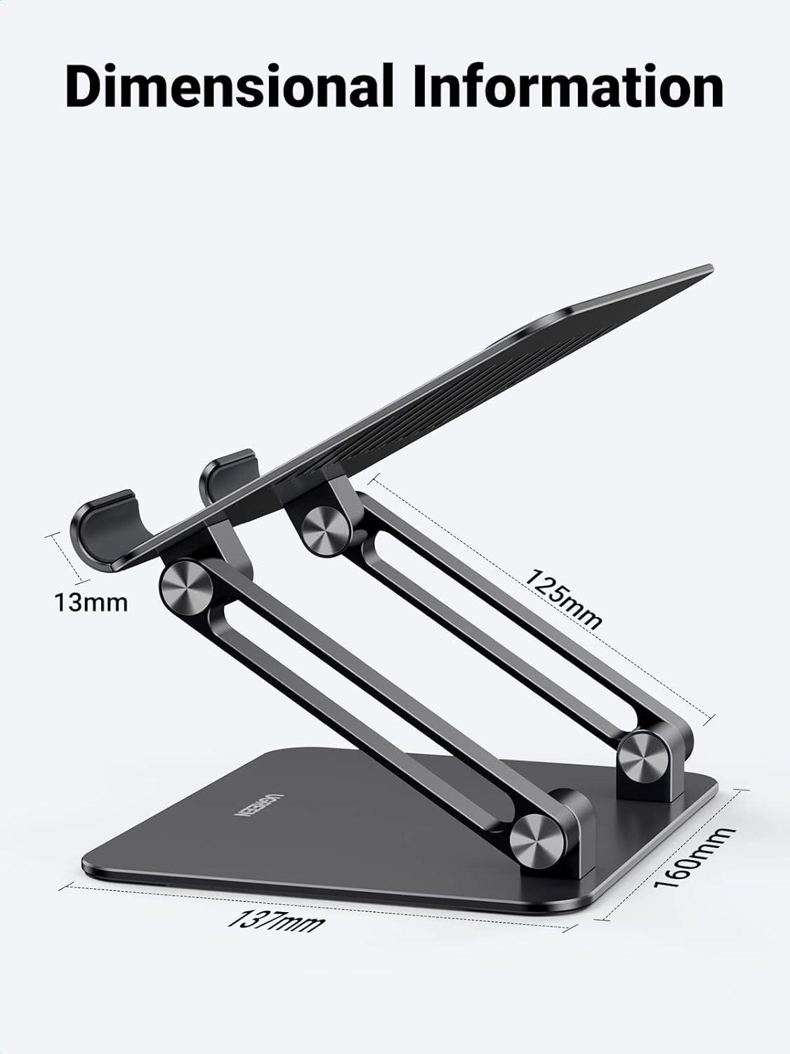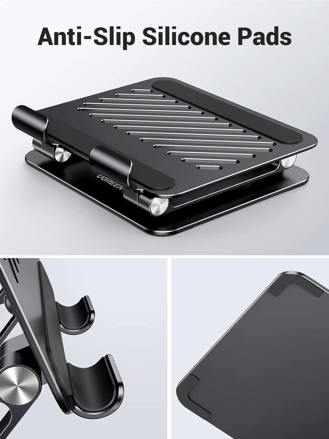 UGREEN Tablet Stand Holder for Desk Dual Rod Support Aluminum Tablet Holder Adjustable Multi-Angle Home Office Accessories Compatible with iPad Pro 13 12 11 10.5 Air Mini 5 4 3 2 Phone E-Reader Silver(Black)